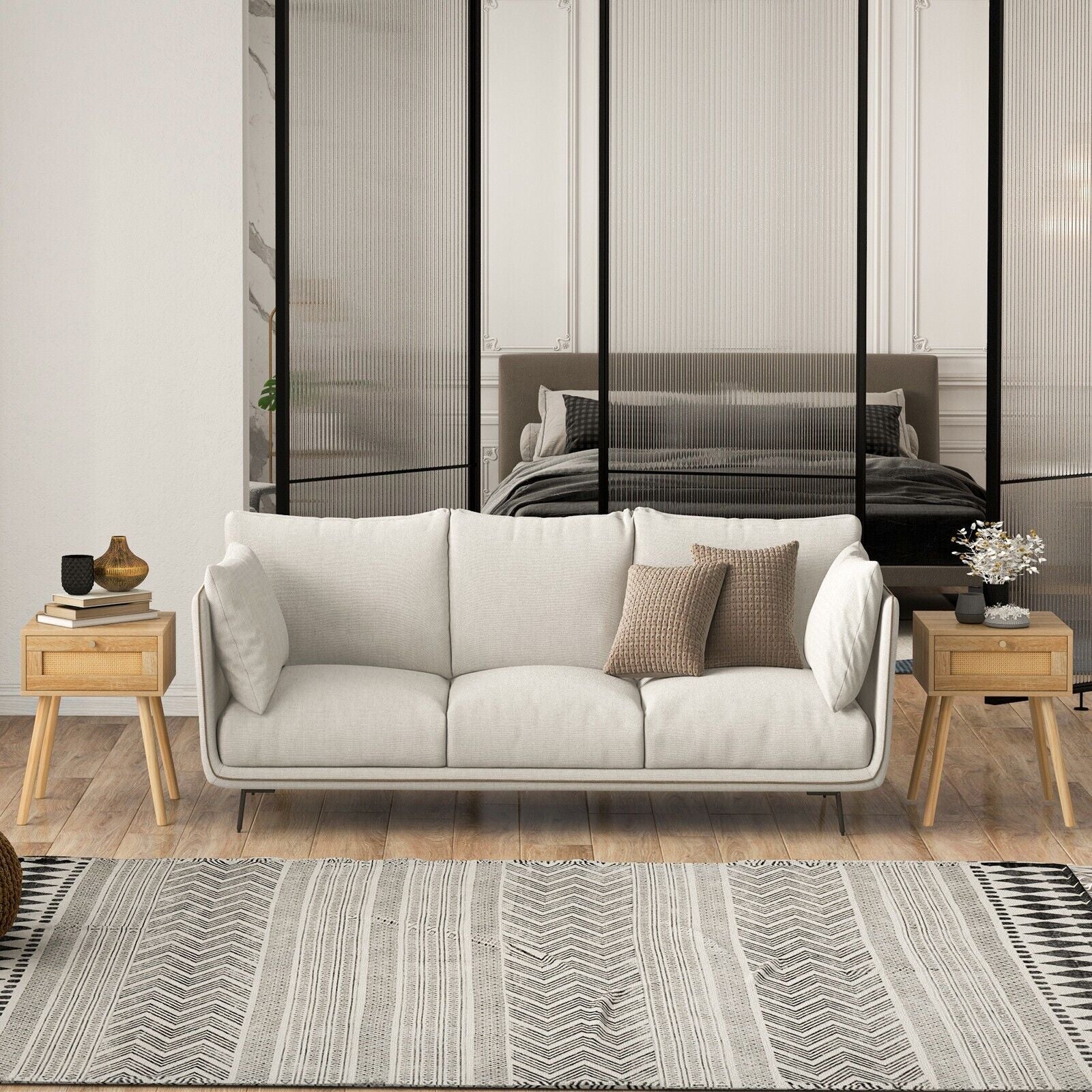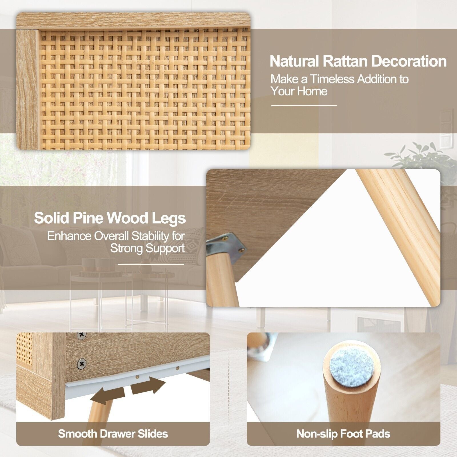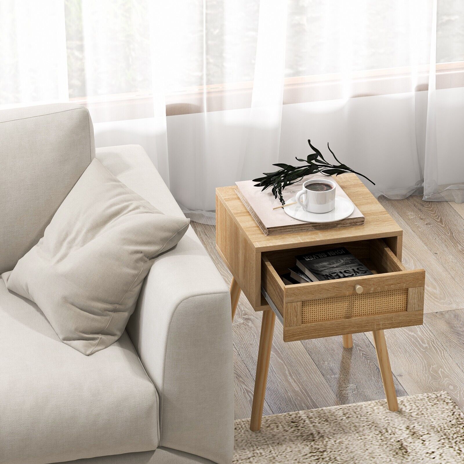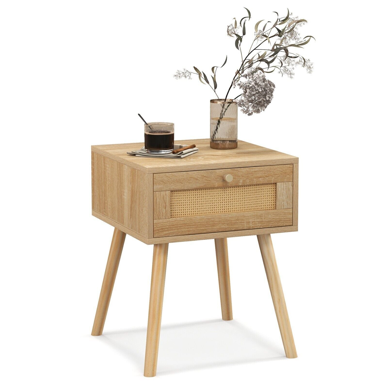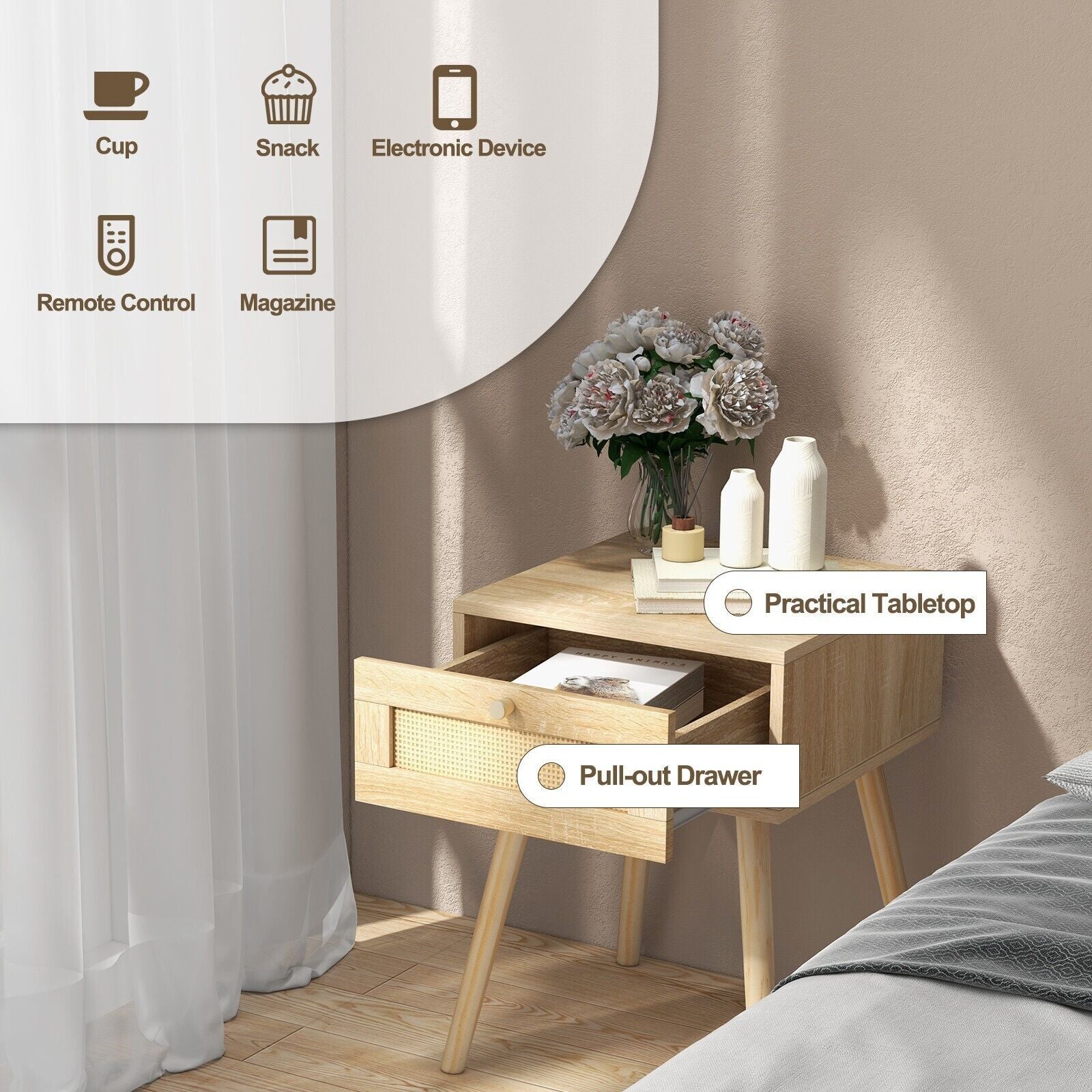 2PCS Modern Nightstand Bedside Sofa End Table with Rattan Drawer Boho Side Table