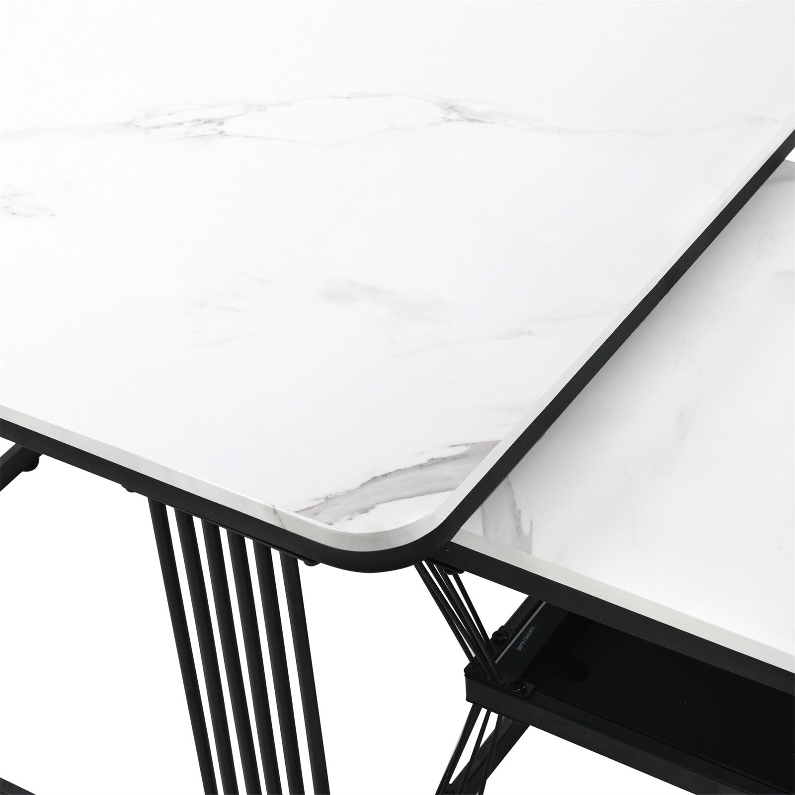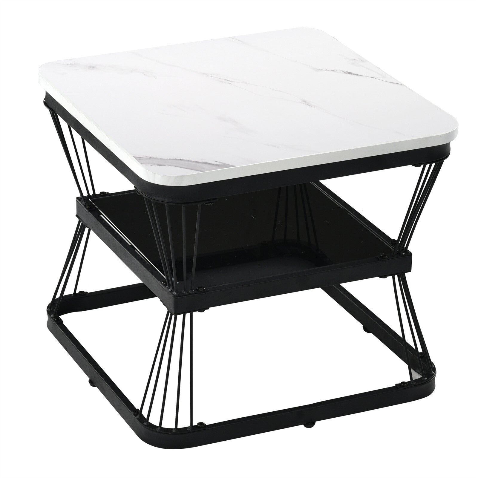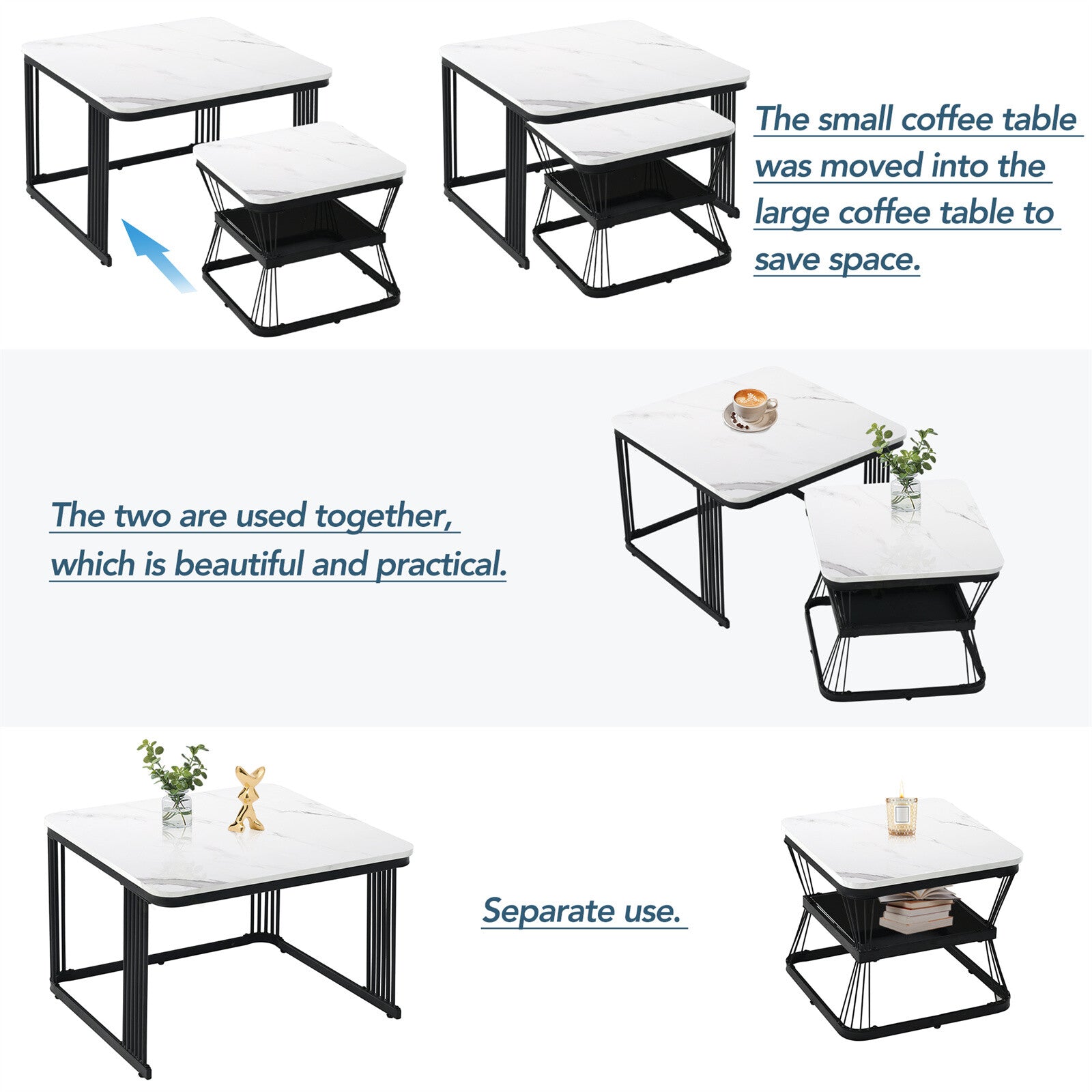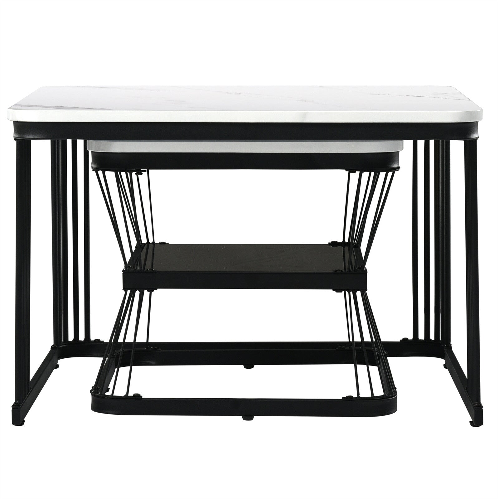 2Pcs Nesting Coffee Tables Set Square Stacking Side Tables Marble-Look White