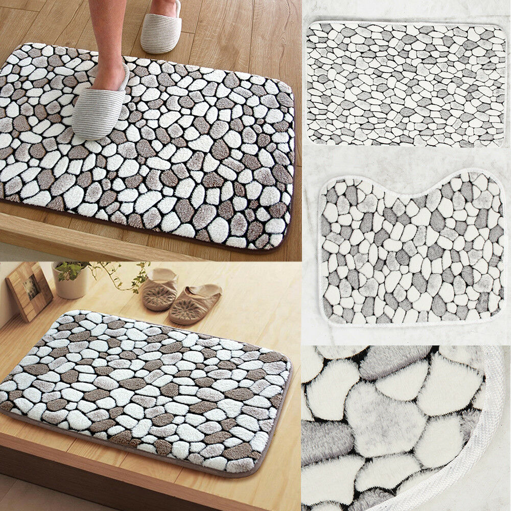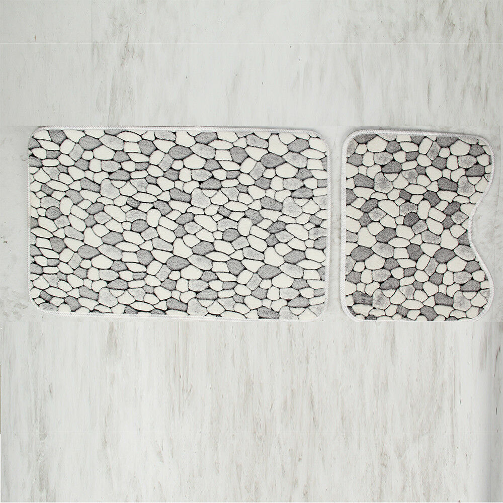 2PCS PEBBLES BATH & PEDESTAL MAT SETS NON SLIP SOFT LUXURY BATHROOM RUGS
