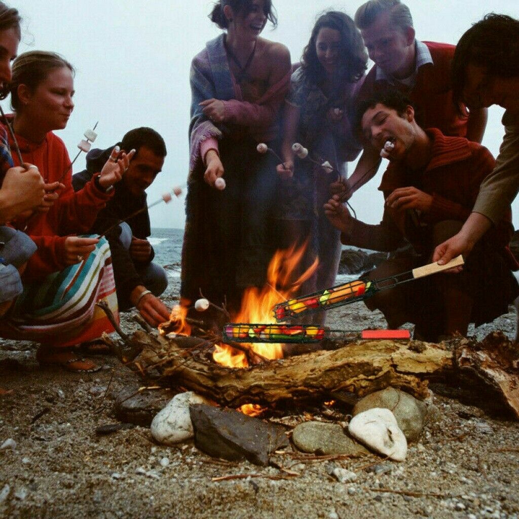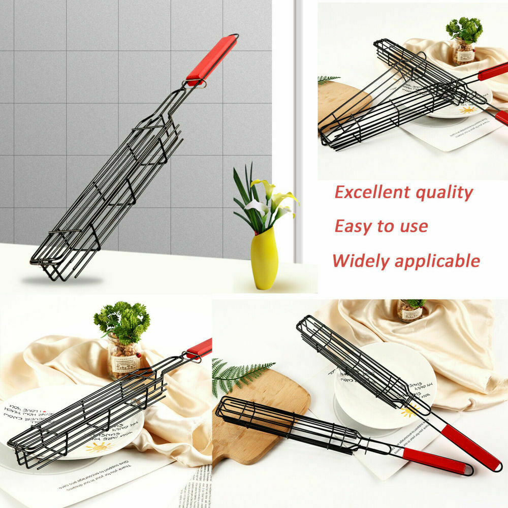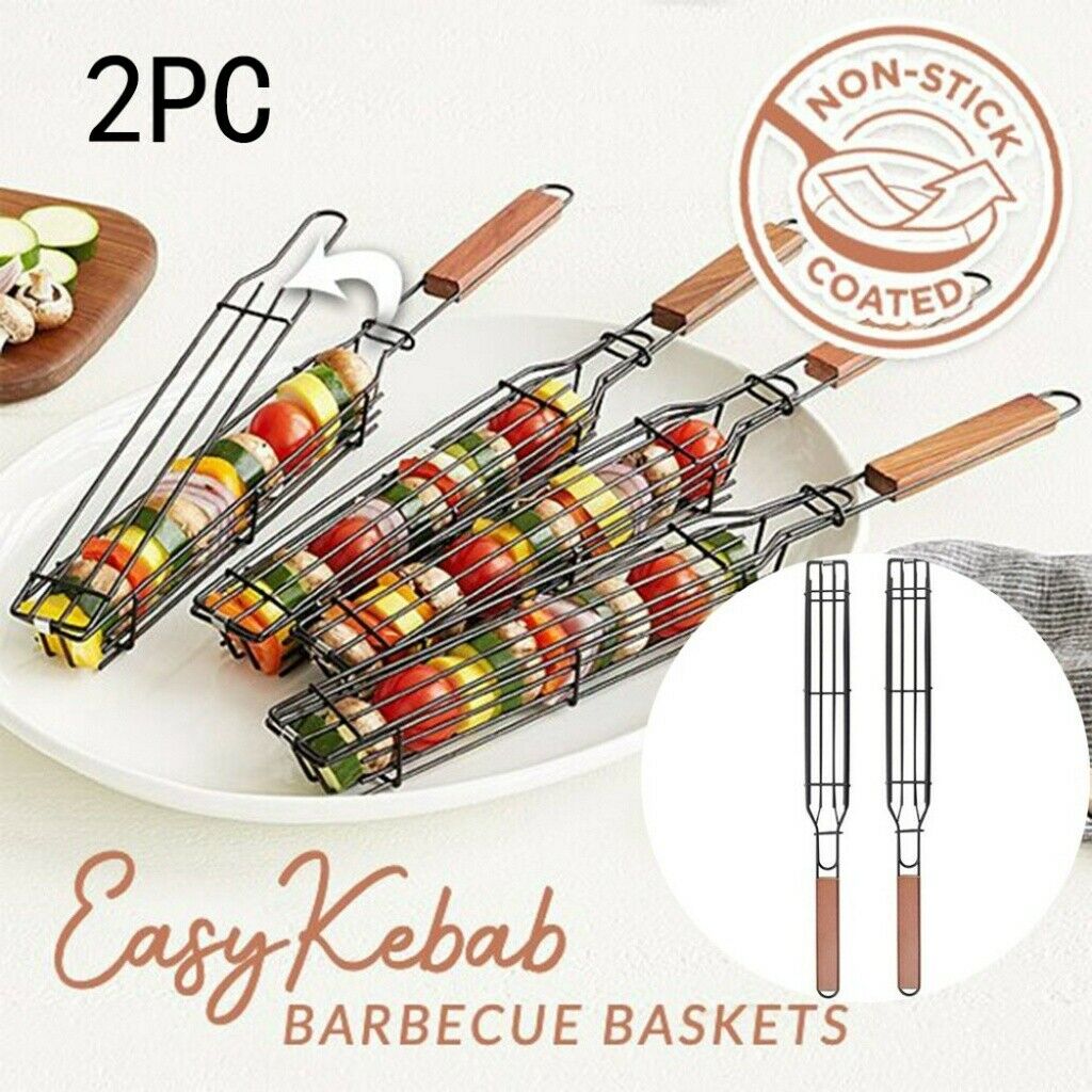 2PCS Portable BBQ Grilling Basket Non-Stick Barbecue Clip Grill Tool Accessories