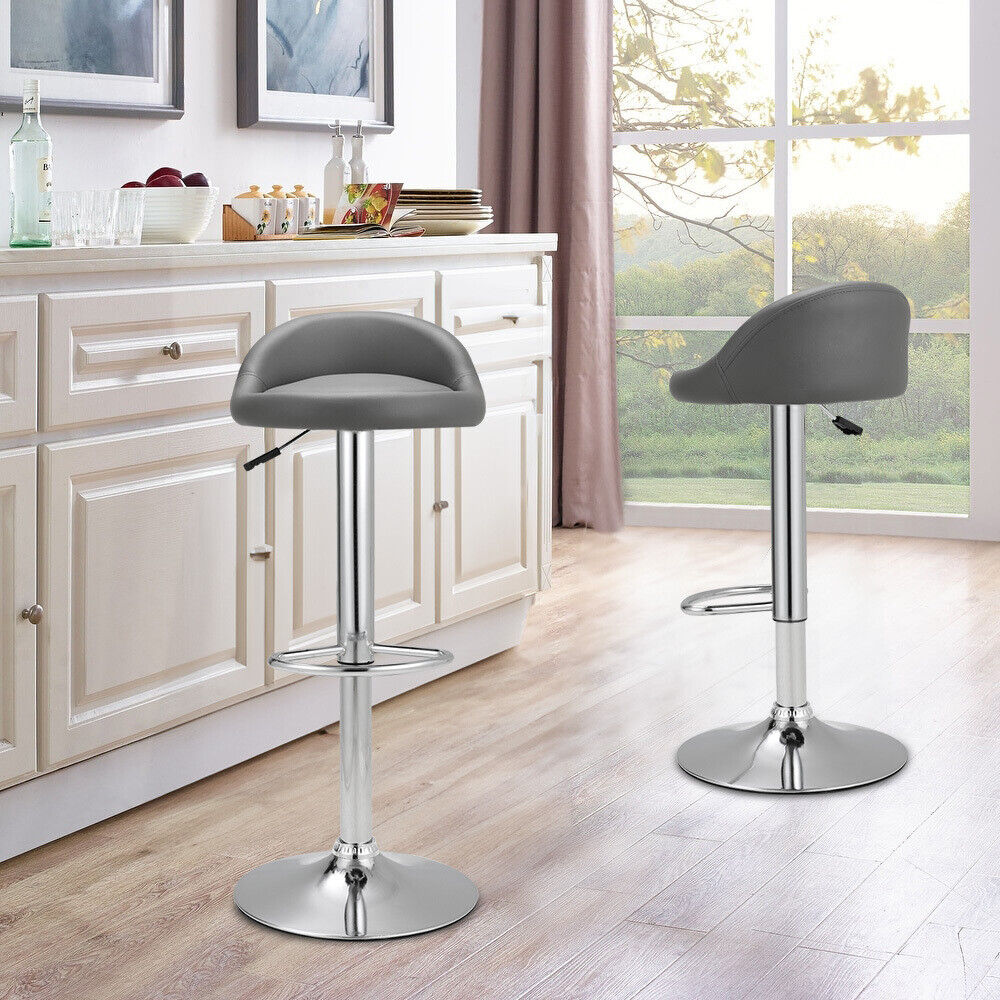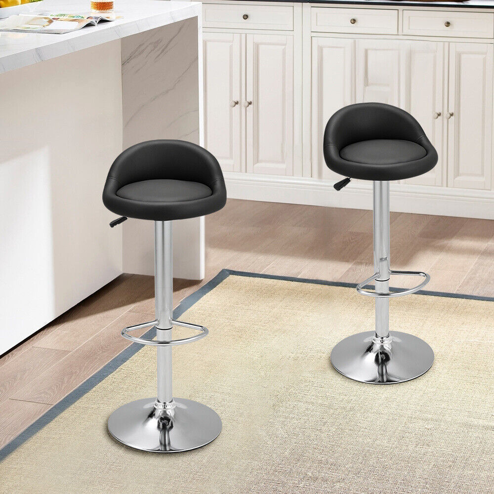 2pcs PU Leather Low Back Barstool Height Adjustable Swivel Stool Kitchen Chair