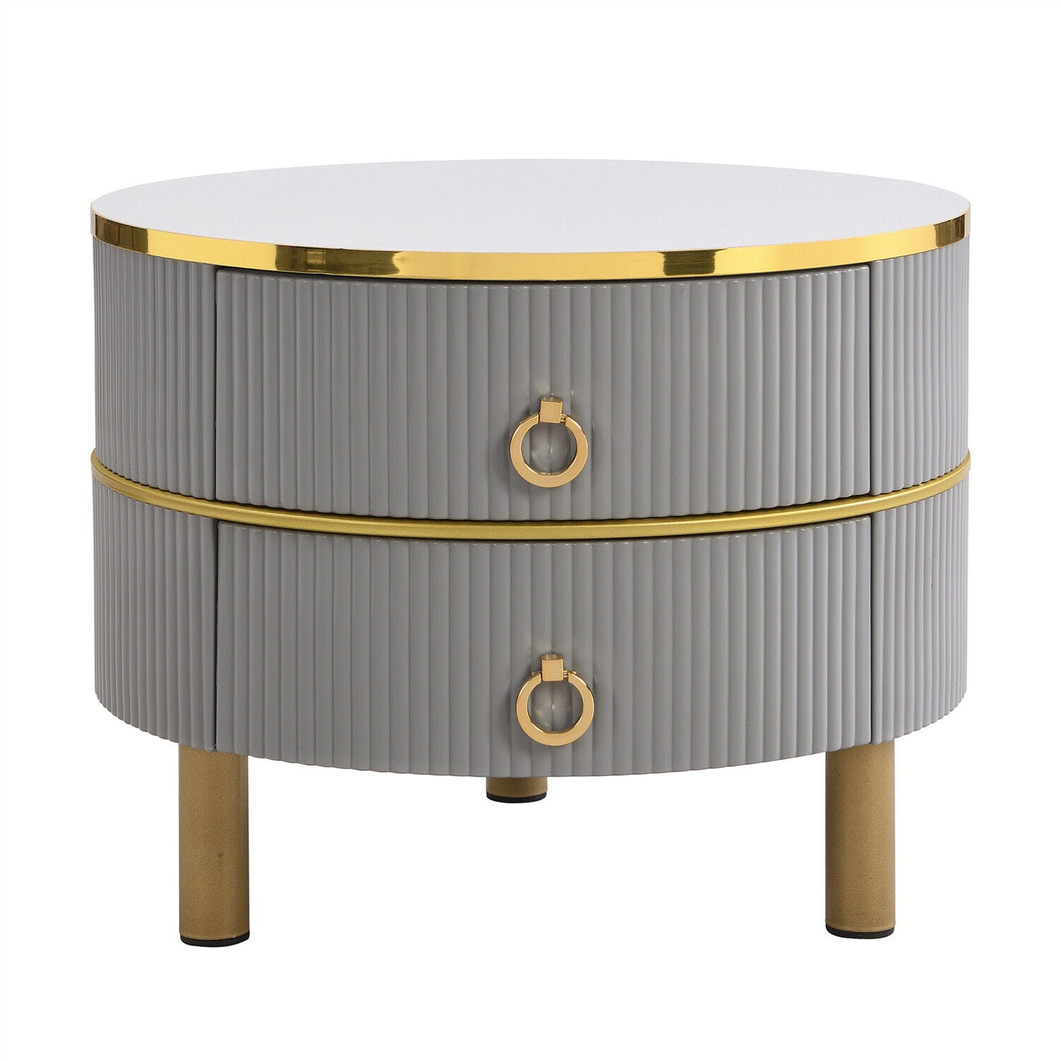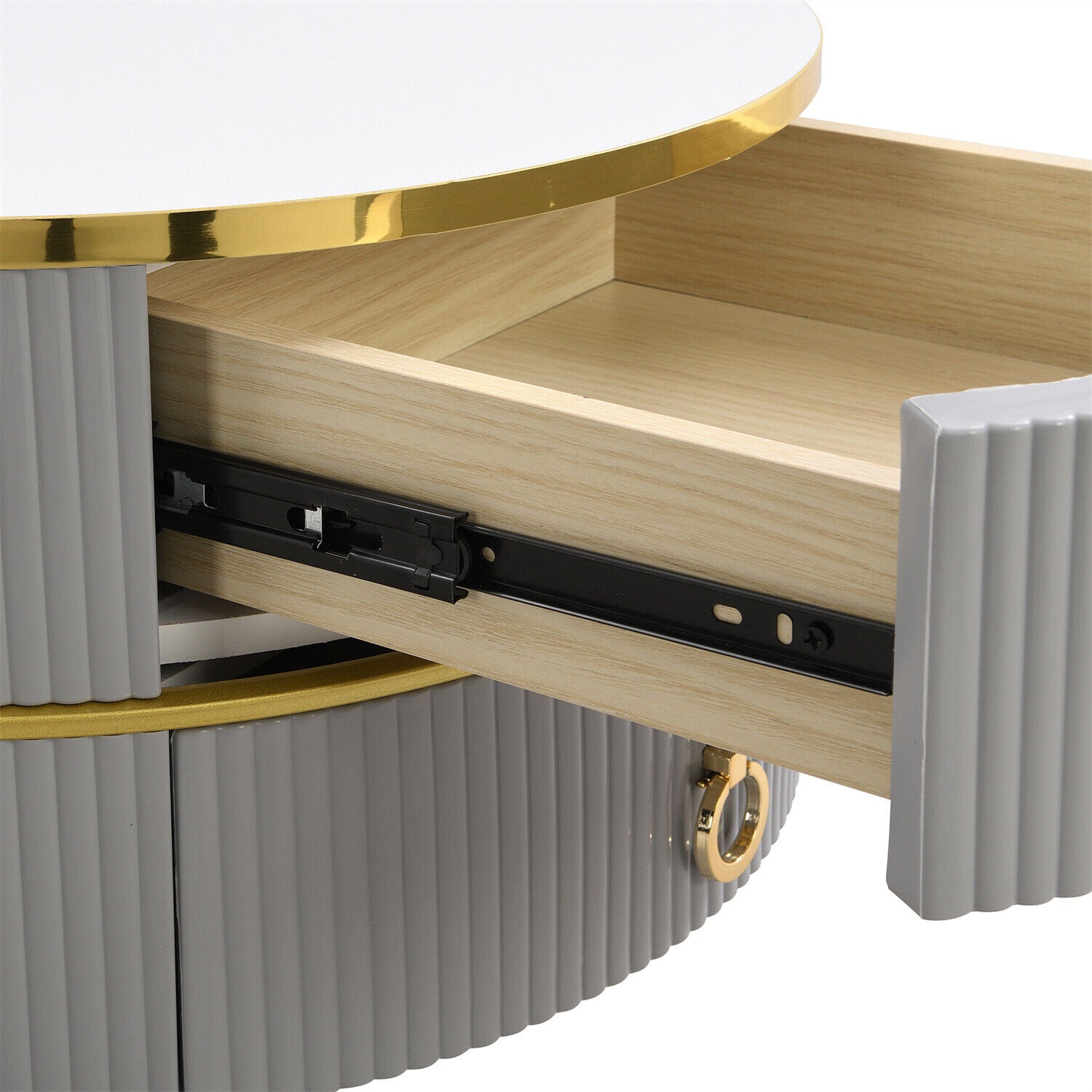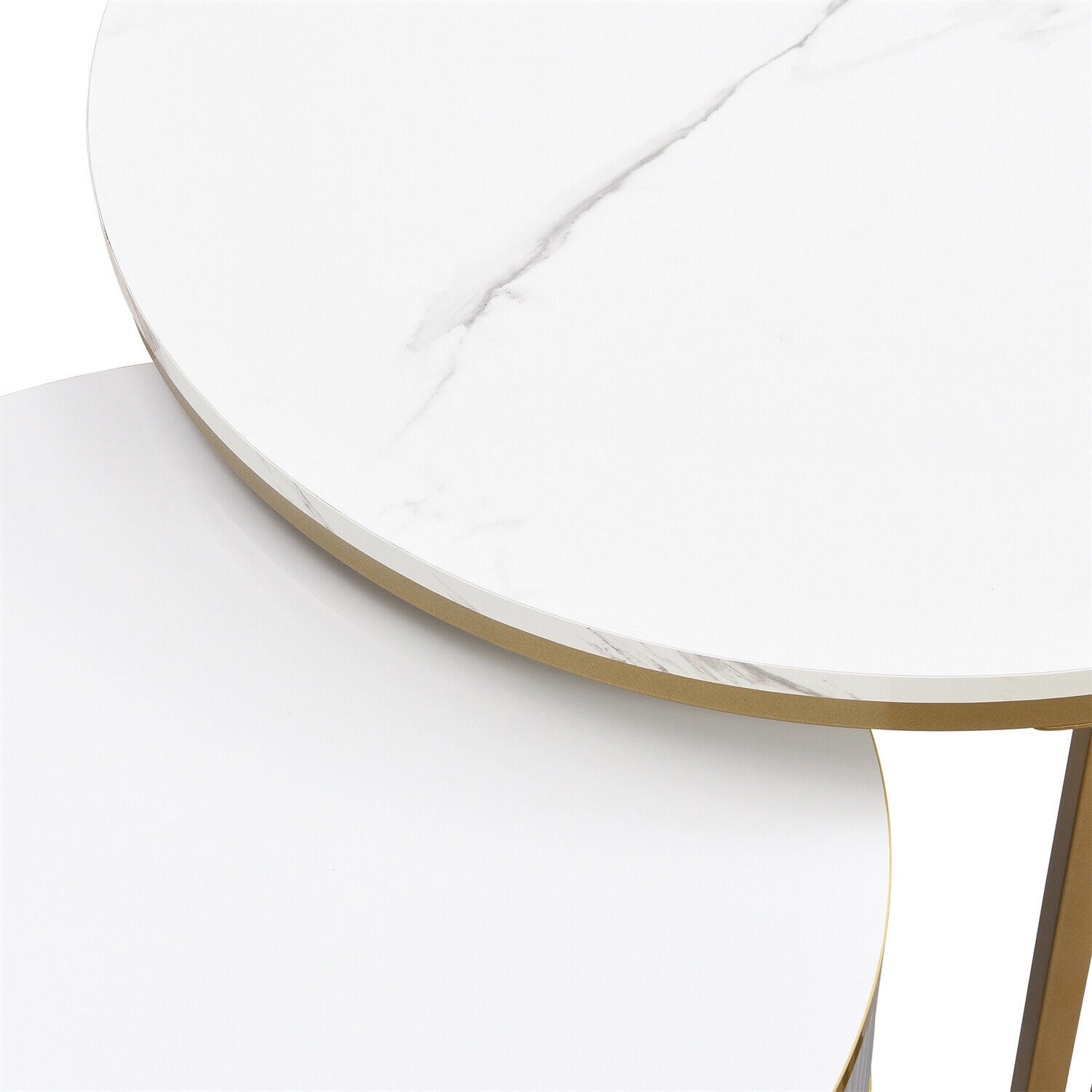 2Pcs Round Nesting Coffee Table Set Stacking Side Tables w/ Drawers Space-saving