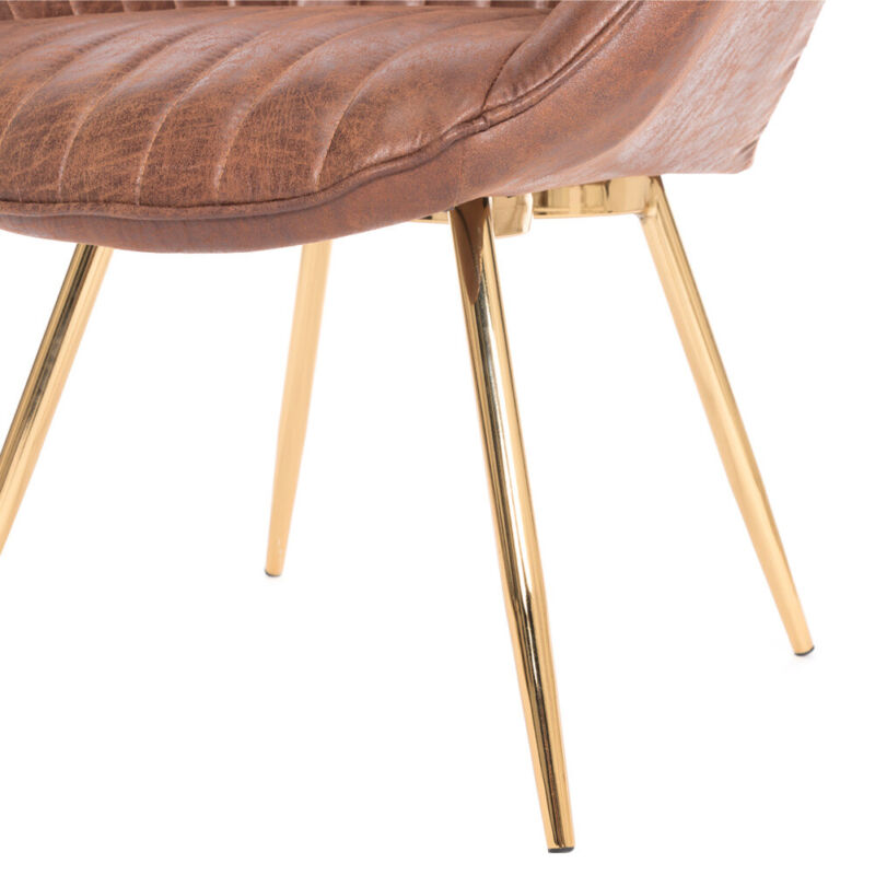 Features Padded Seat, Bucket Ribbed Back, Golden Metal Legs