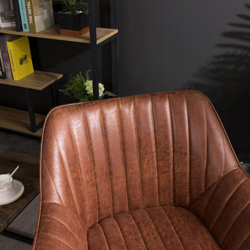 2PCS/SET Distressed Tan Leather Dining Chairs Shell Back Accent Sofa Arm Chairs