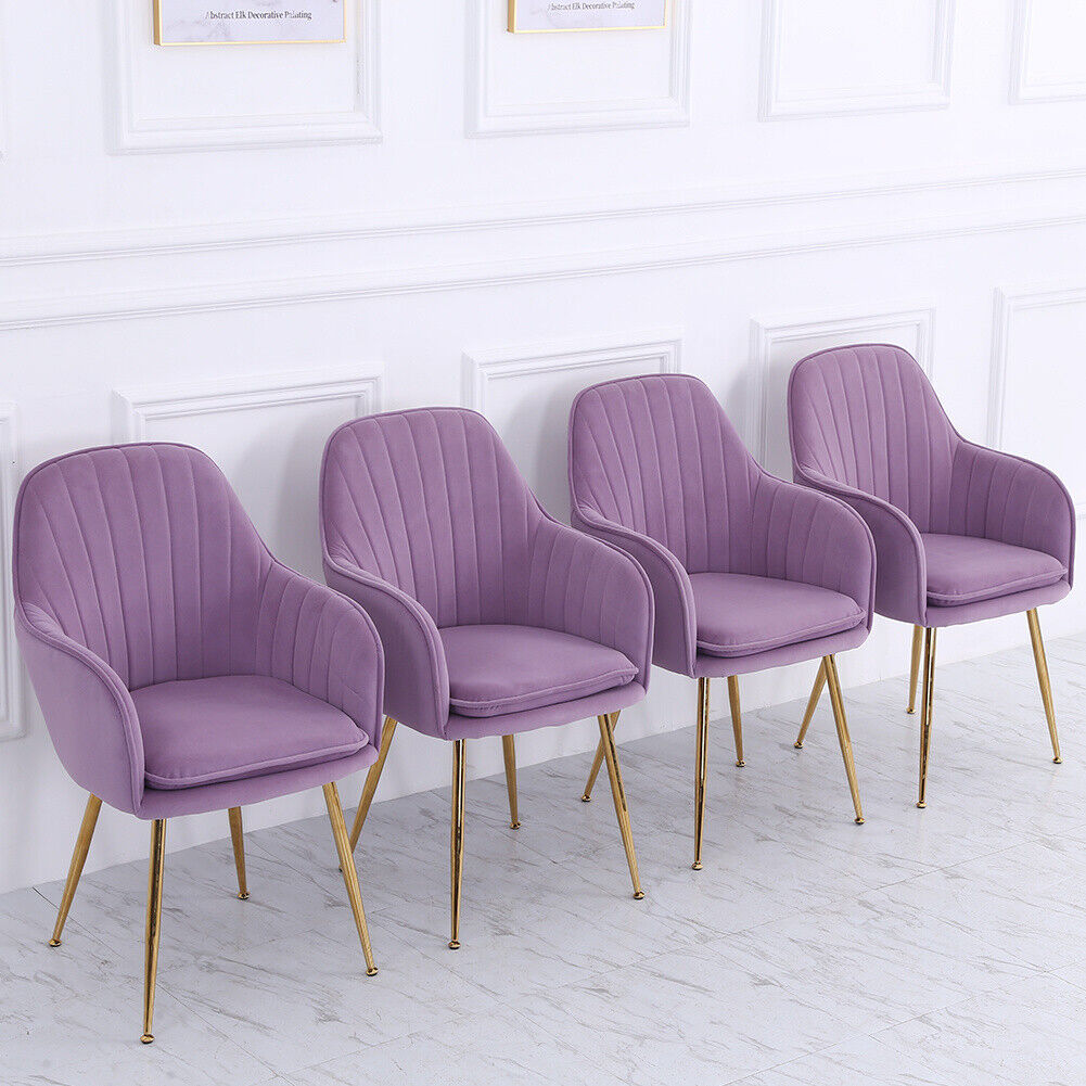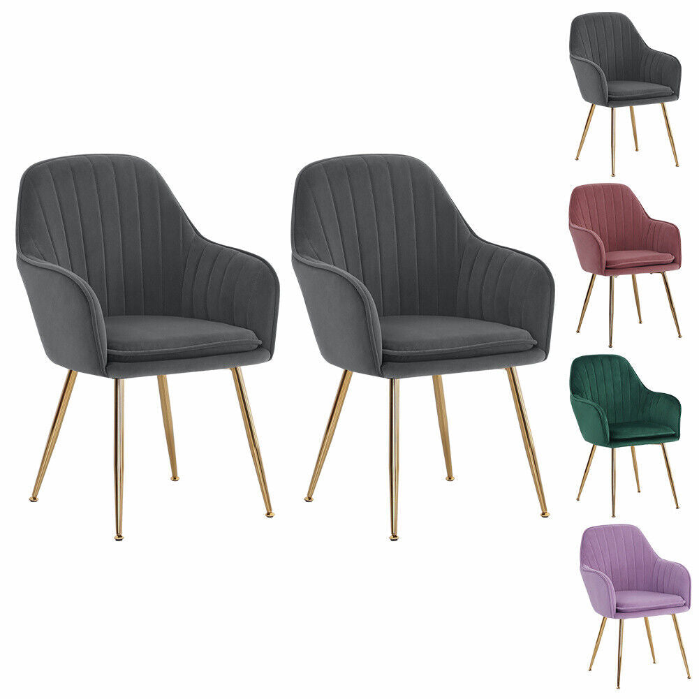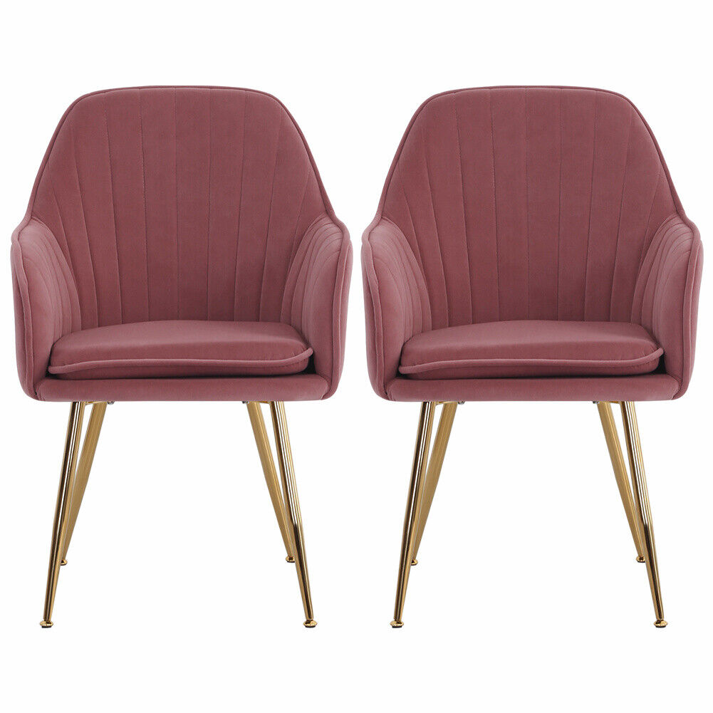 2PCS Soft Velvet Tub Upholstered Accent Chair Dining Chair Metal Legs Kitchen