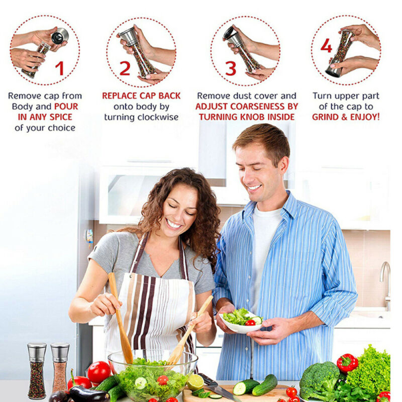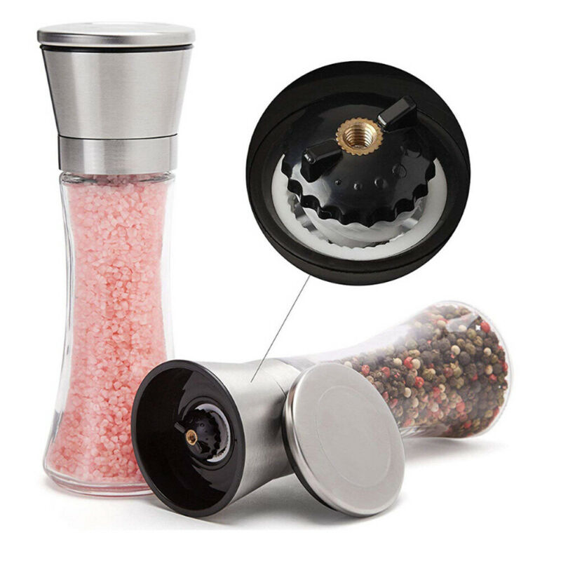 2Pcs Stainless Steel Manual Salt Pepper Grinder Mill Herb Spice Hand Shaker Set