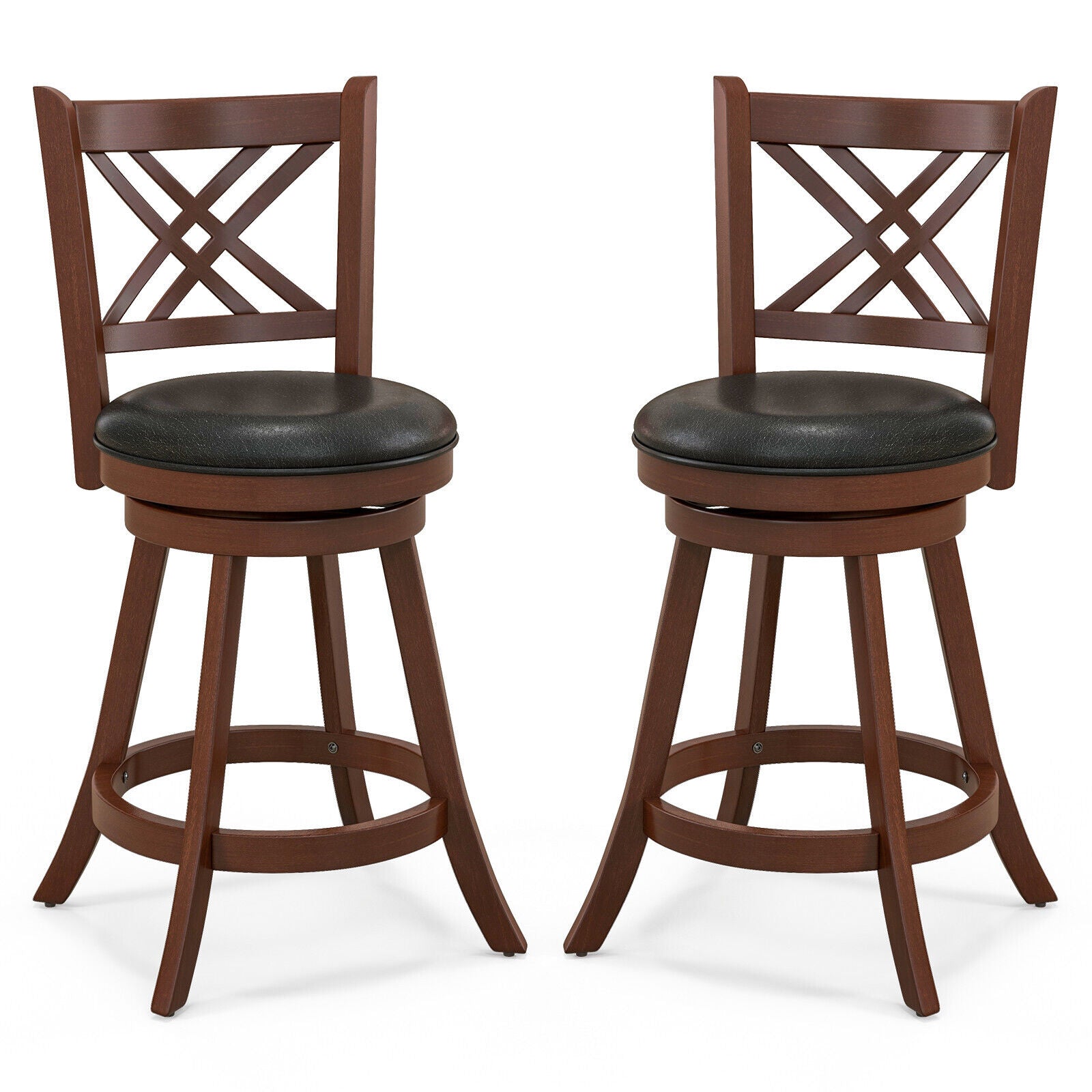 2Pcs Swivel Bar Stools Upholstered Counter Height Barstools w/ PU Seat 24"