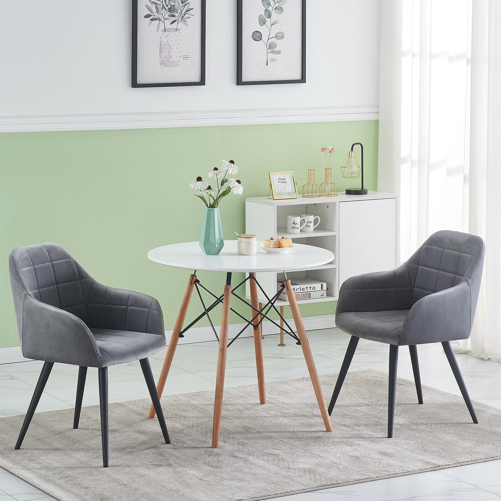 2Pcs Velvet Dining Chairs 1Pair Living Room Chairs with Armrest and Metal leg