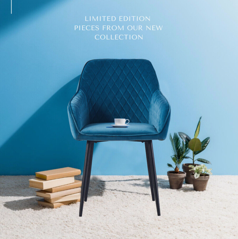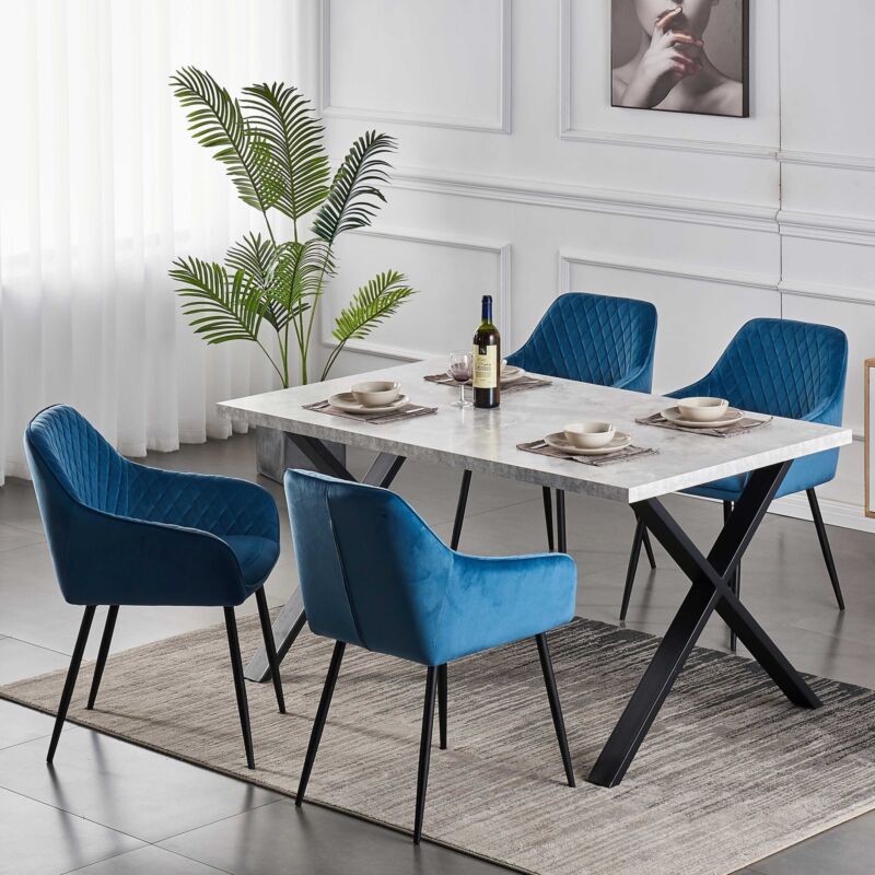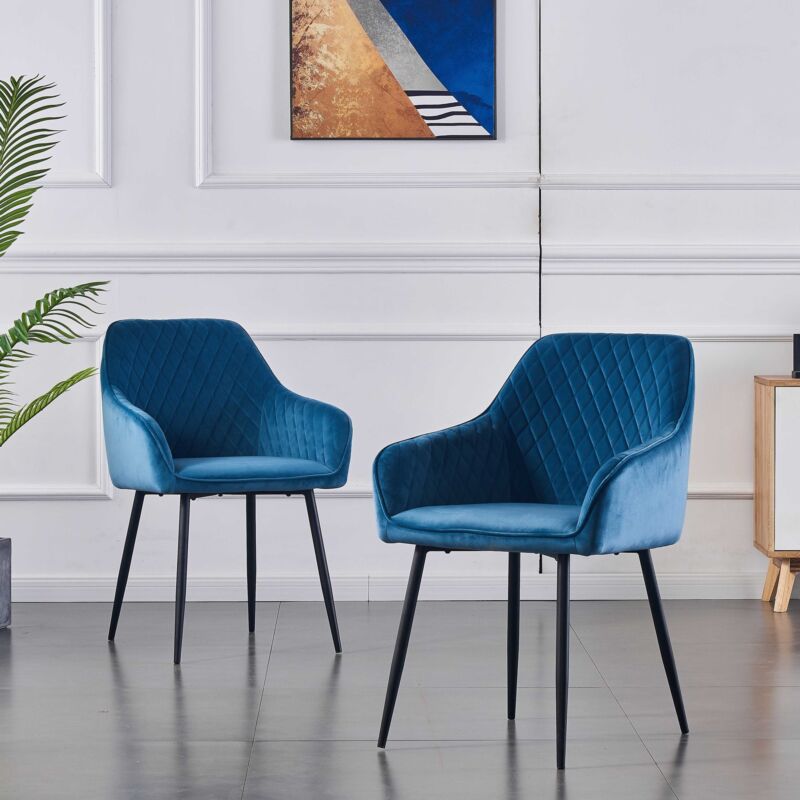 2PCS Velvet Dining Chairs Set Padded Seat Metal Leg Kitchen Home Office Chairs