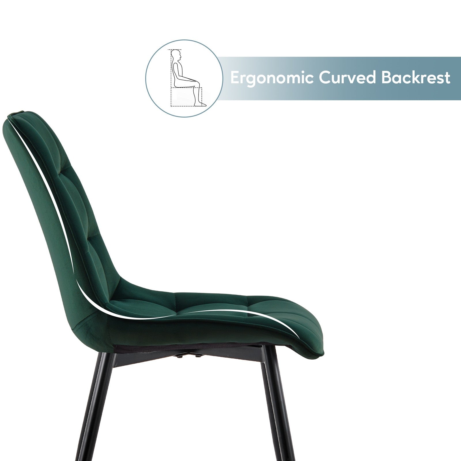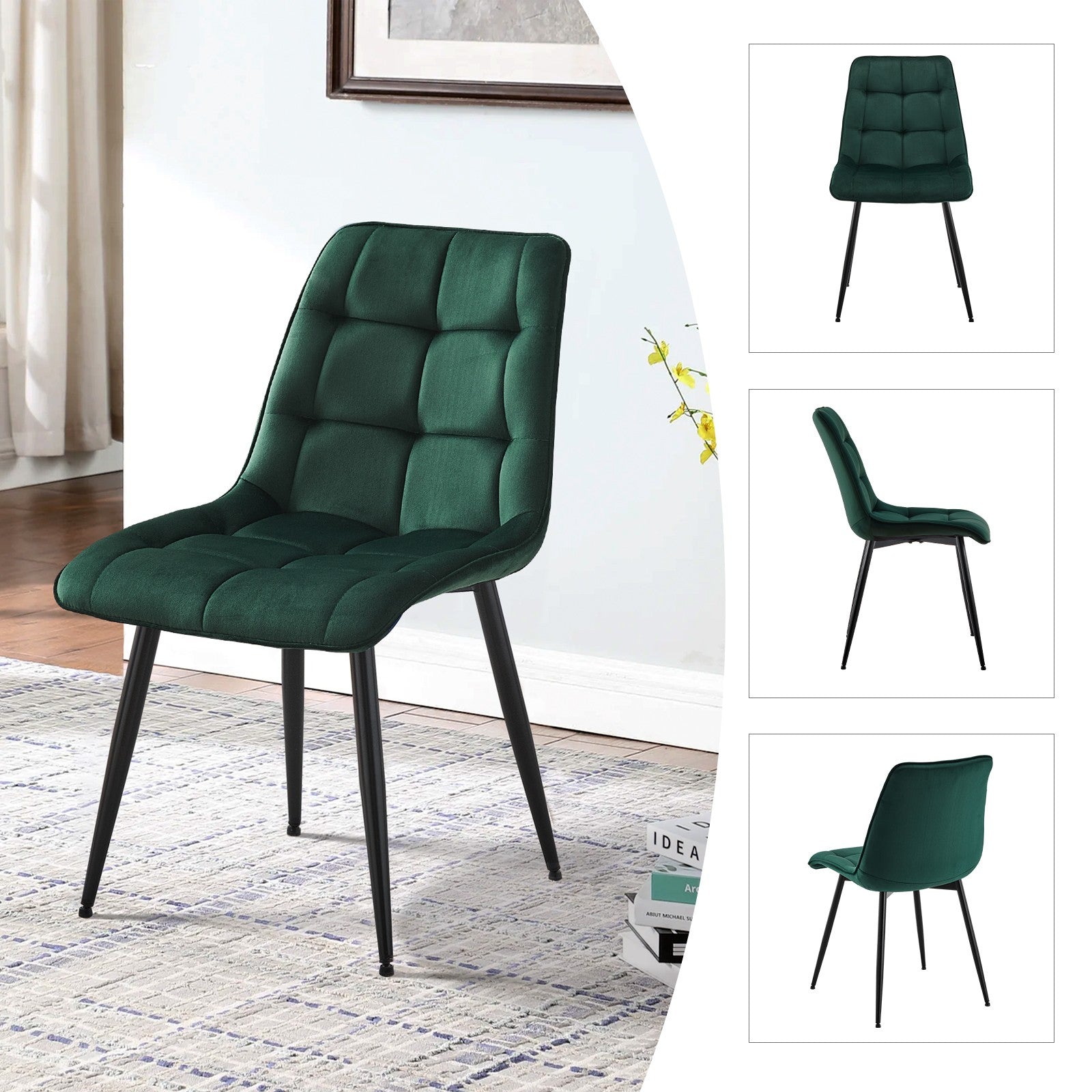 2PCs Velvet Dining Chairs Square Seat Design Dining Room chairs Green