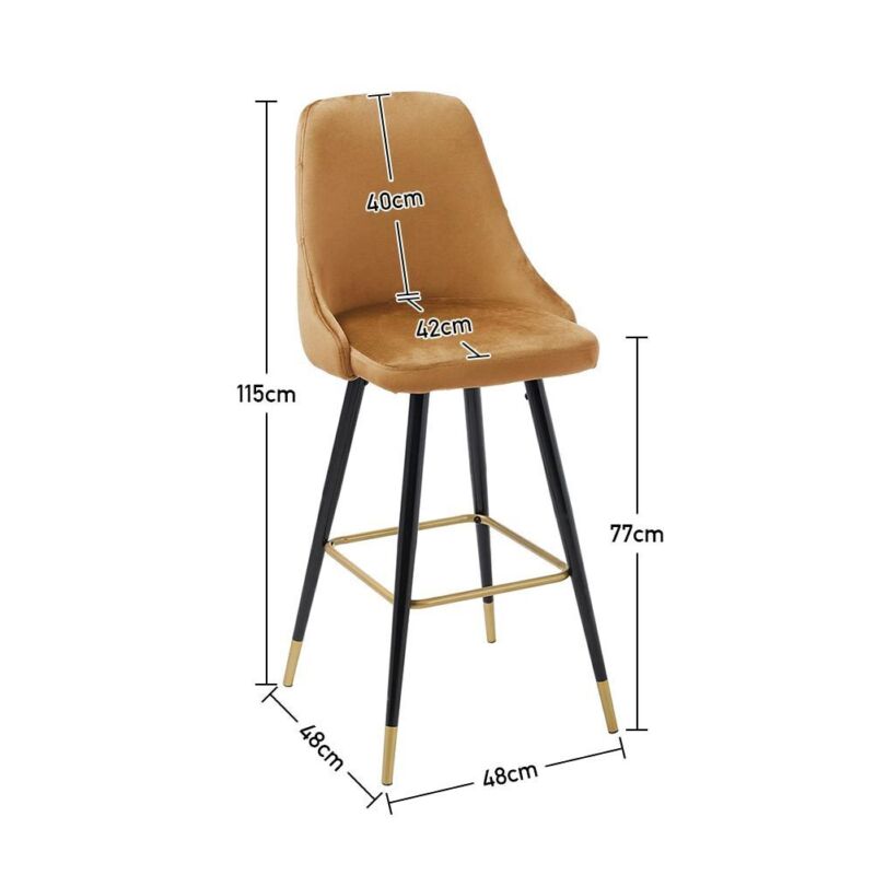 2Pcs Velvet High Bar Stools Breakfast Kitchen Counter Chairs Gold Metal Footrest