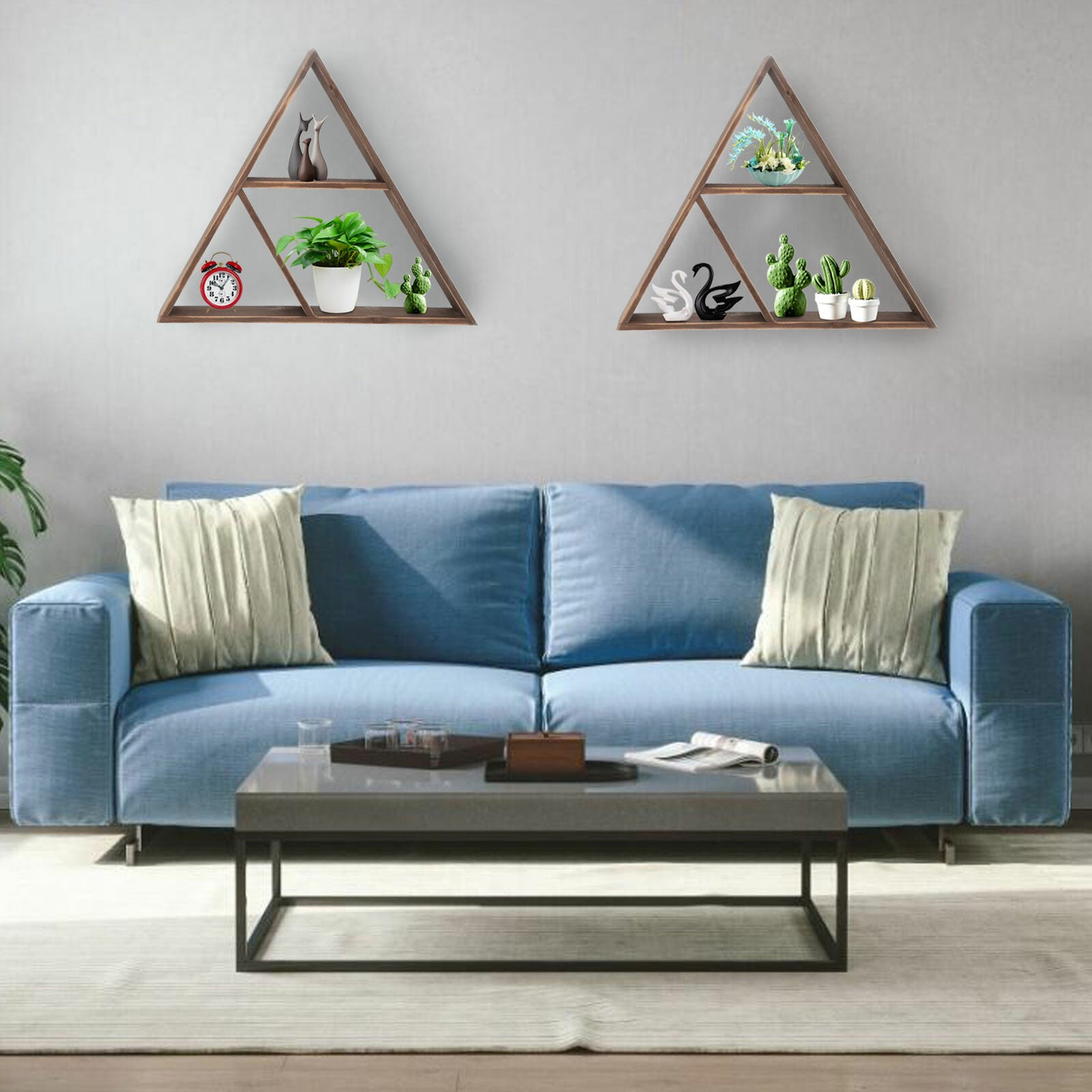 2Pcs Wall Display Rack Triangle Storage Shelf Floating Bookshelf for Living Room