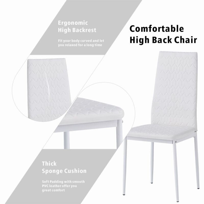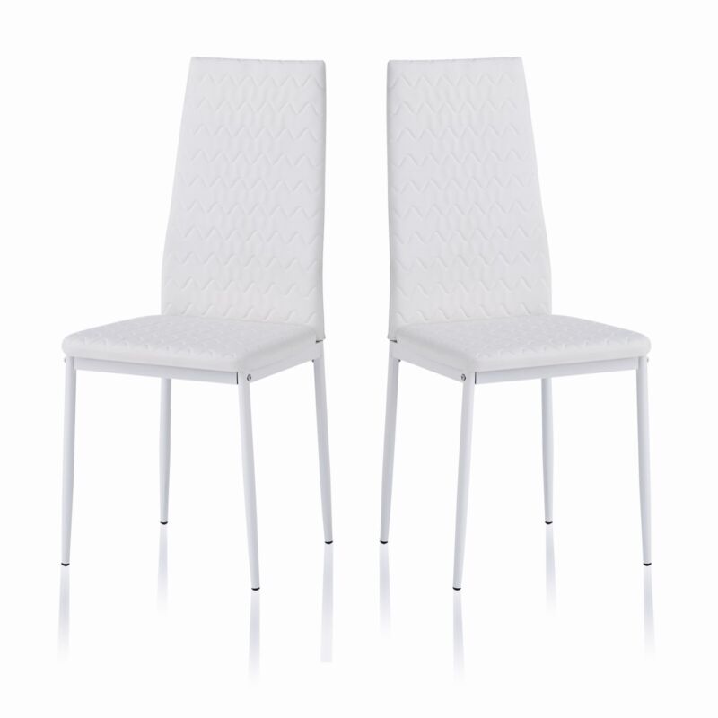 2pcs White High Back Ripple Lines Dining Chairs Metal Legs Kitchen Dining Room