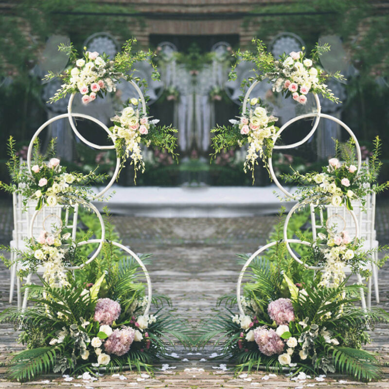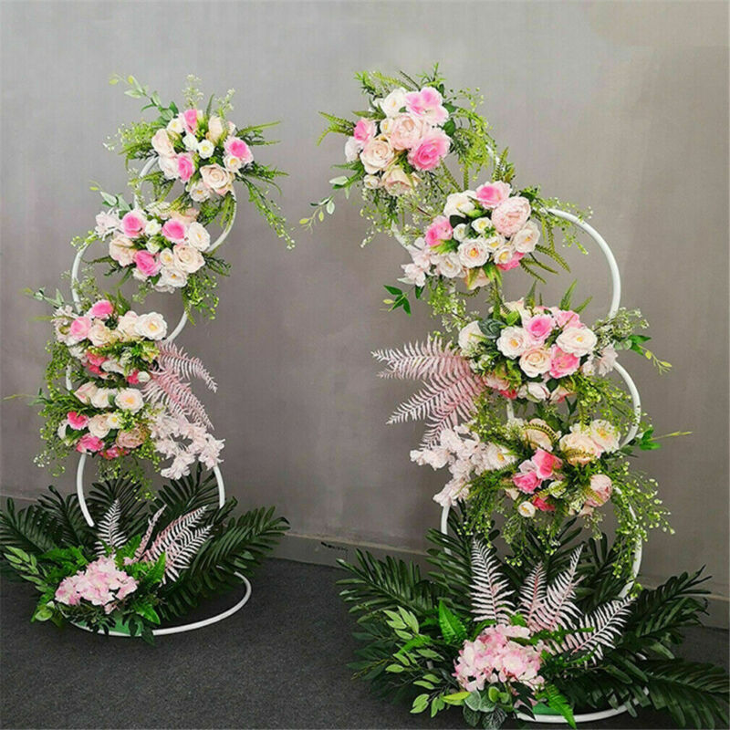 2PCS White Wedding Arch Round Moongate Stand Flower Frame Garden Outdoor Indoor