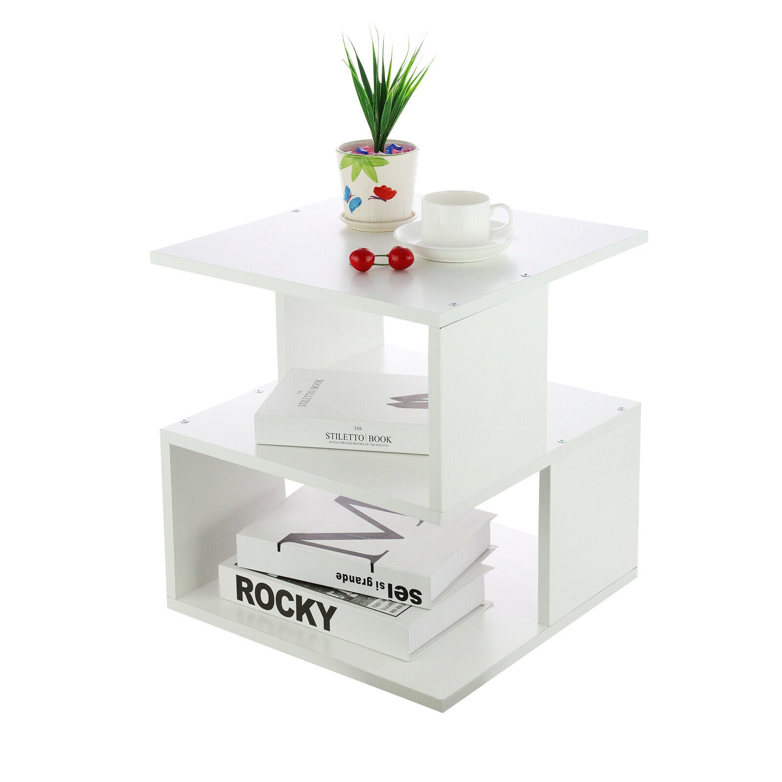 2Tier Coffee Tea Table Square Side Desk Bedroom Nightstand with Storage Shelf