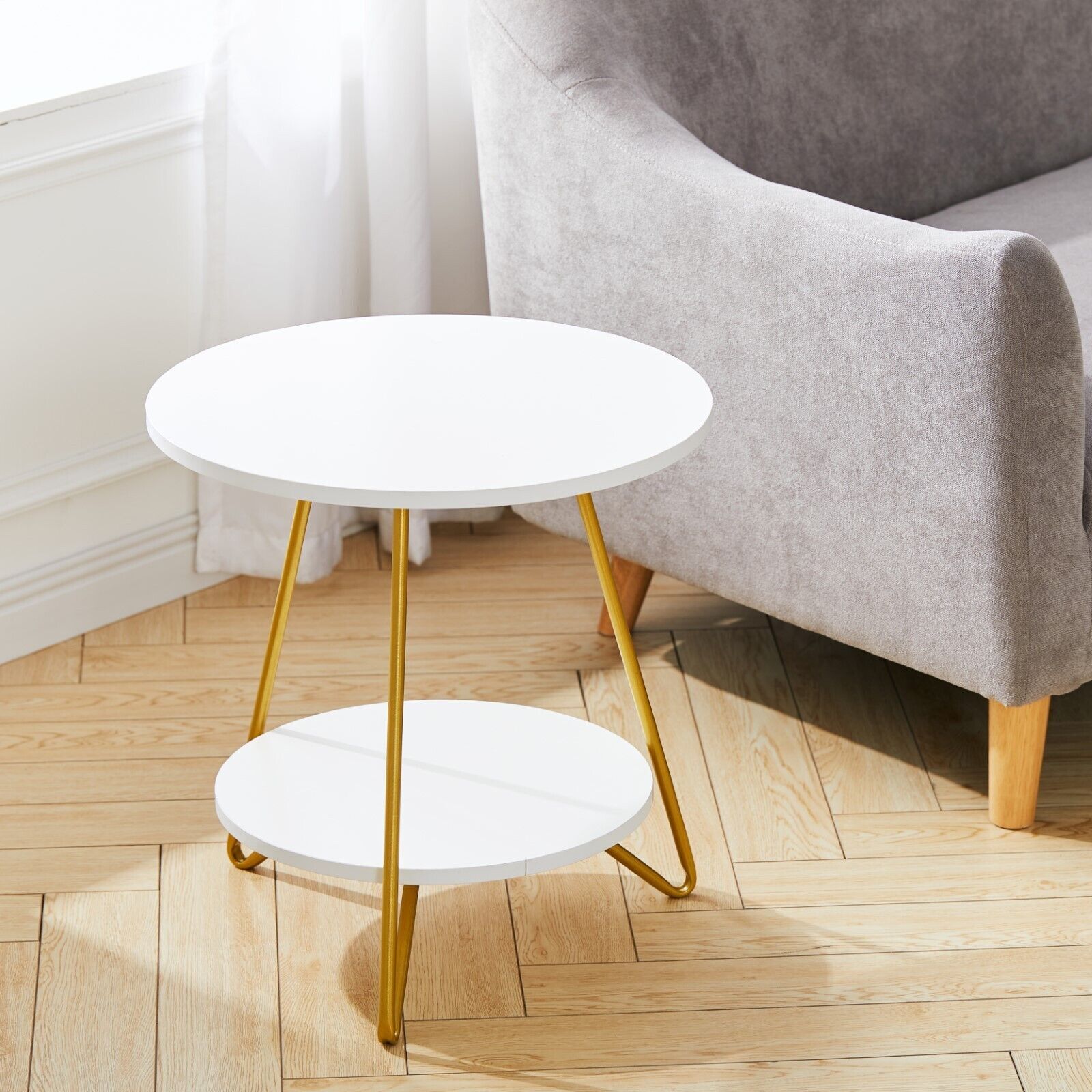 2Tier Round Bedside Table Nightstand Coffee Tea Side End Lamp Desk Shelf Storage