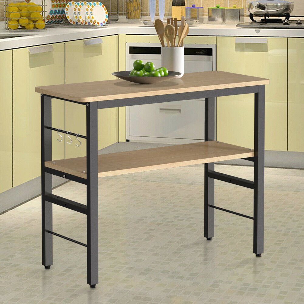 2Tier Wood Metal Microwave Storage Rack Shelving Shelf Kitchen Office Unit Stand
