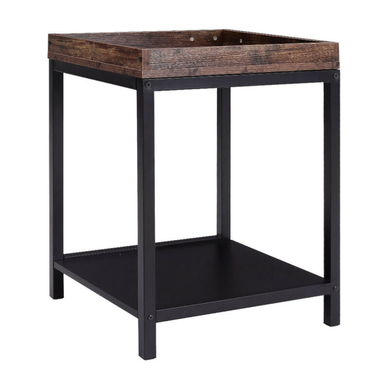 2Tier Wood&Metal Side End Table Nightstand Furniture Living Room Bedroom Storage