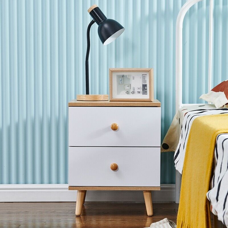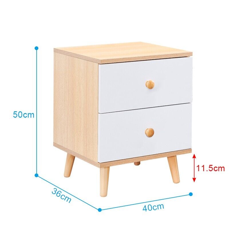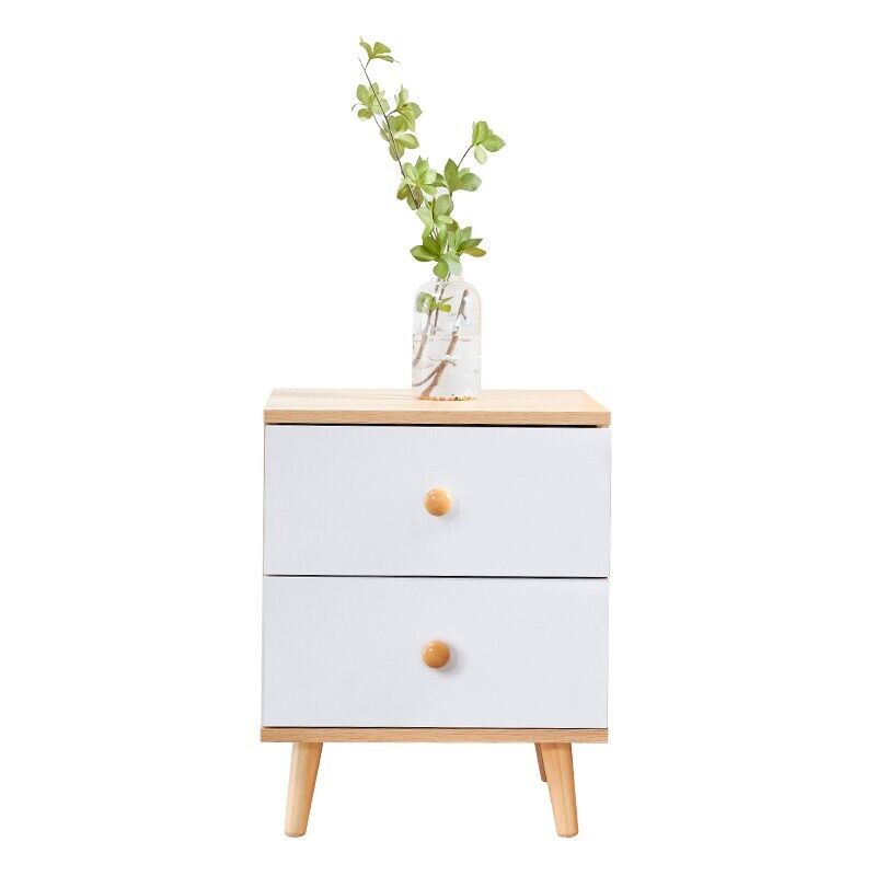 2White Drawers Storage Wood Bedside Cabinet Nightstand Small Side Table Bedroom