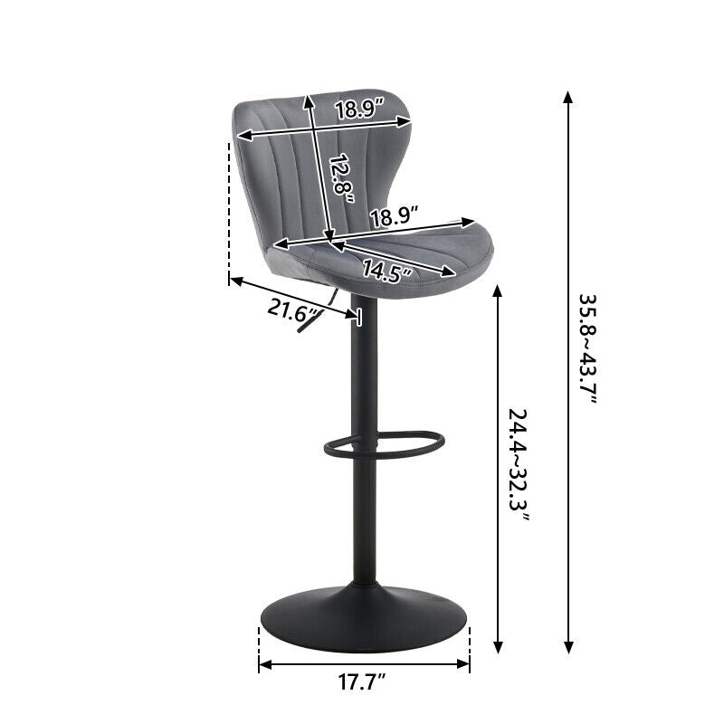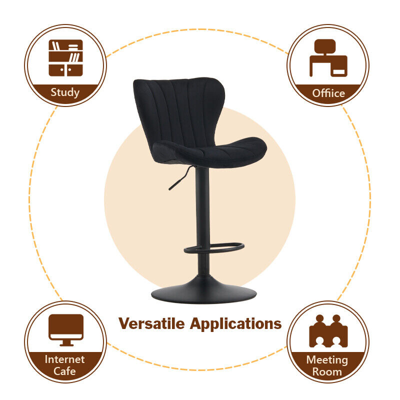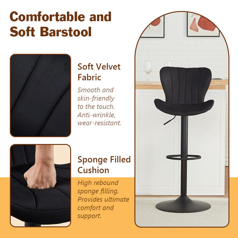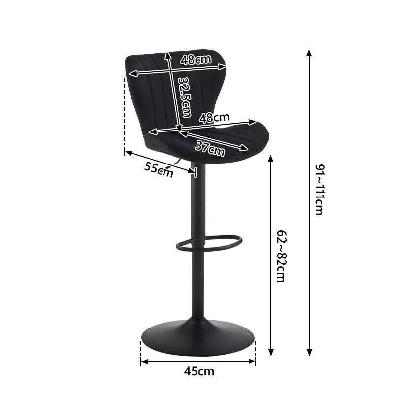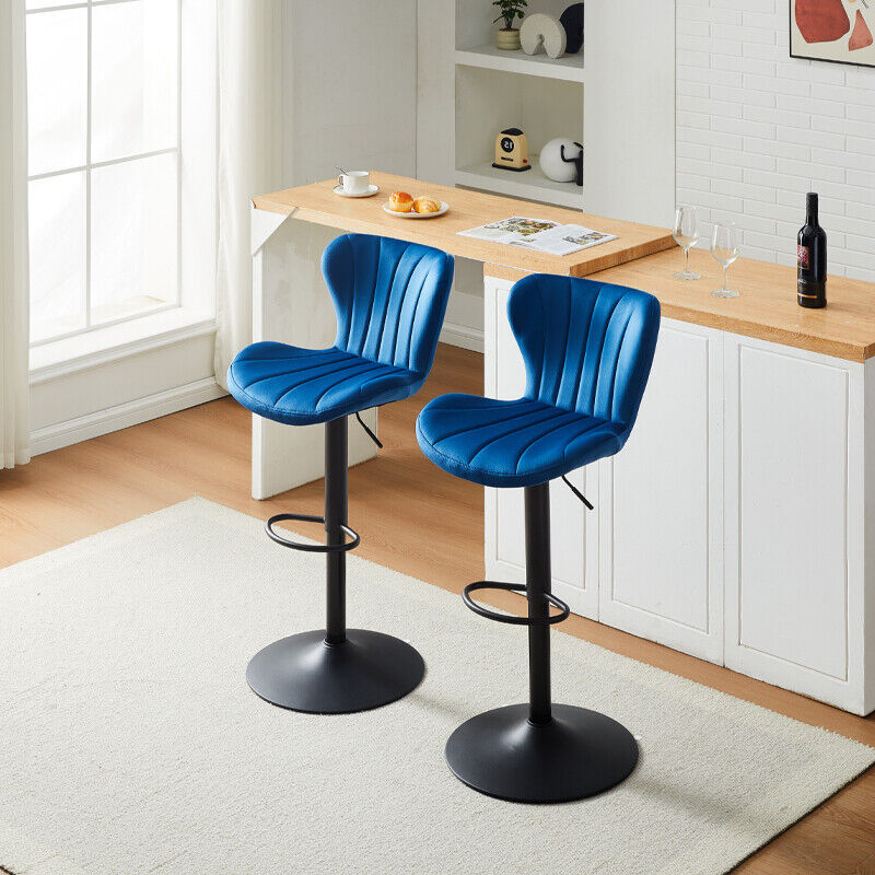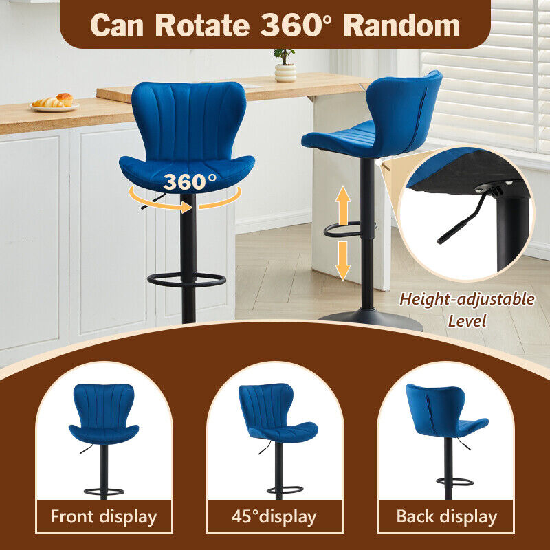 2x 360° Swivel Bar Stools Velvet Gas Lift Chairs Kitchen Pub Chair
