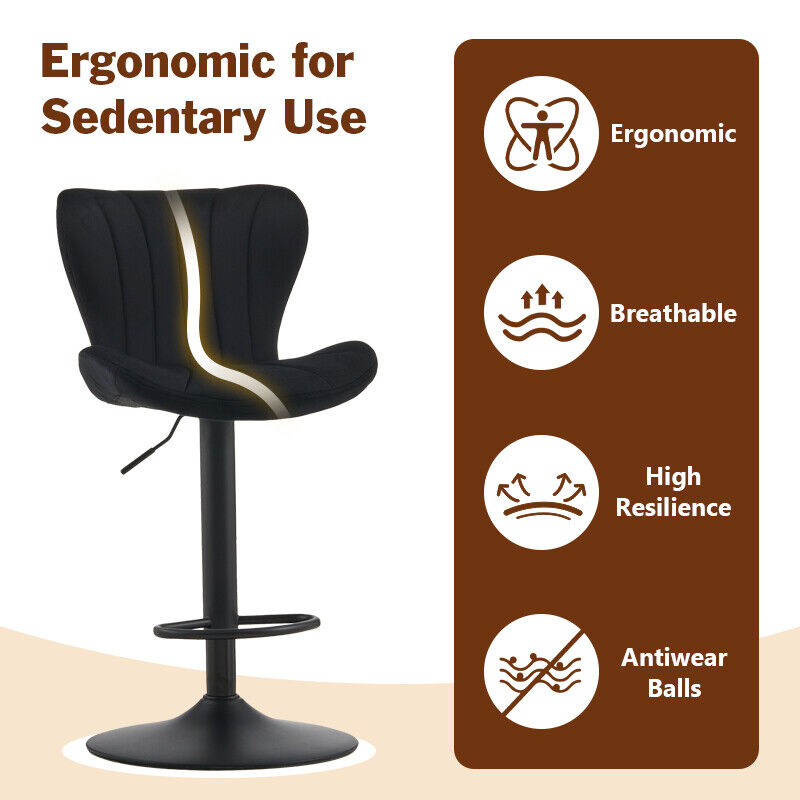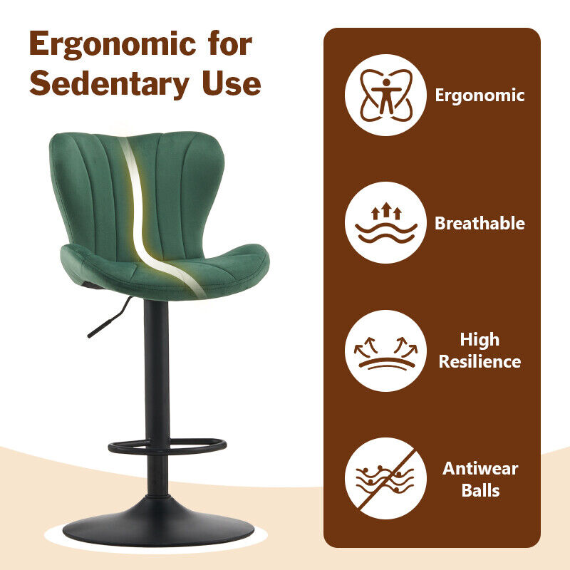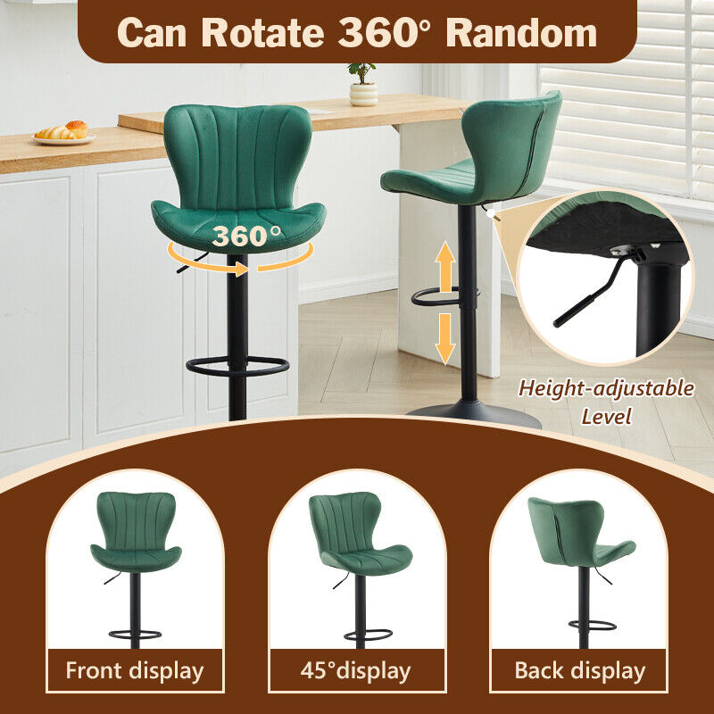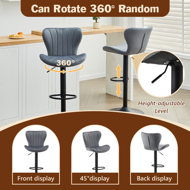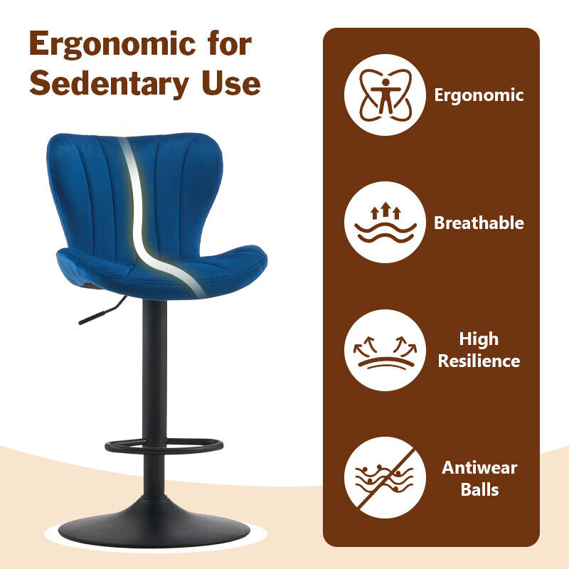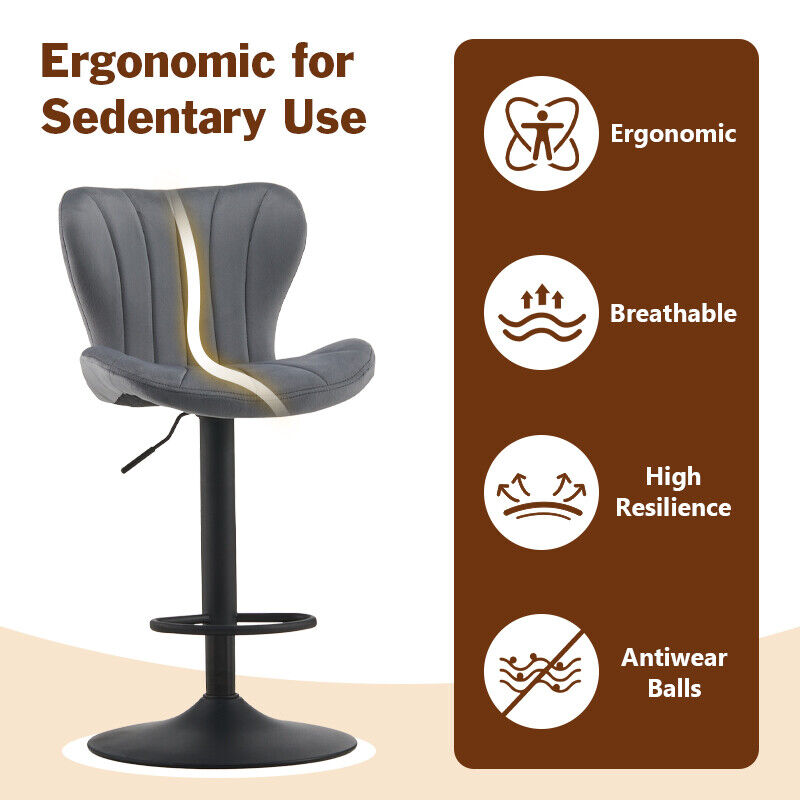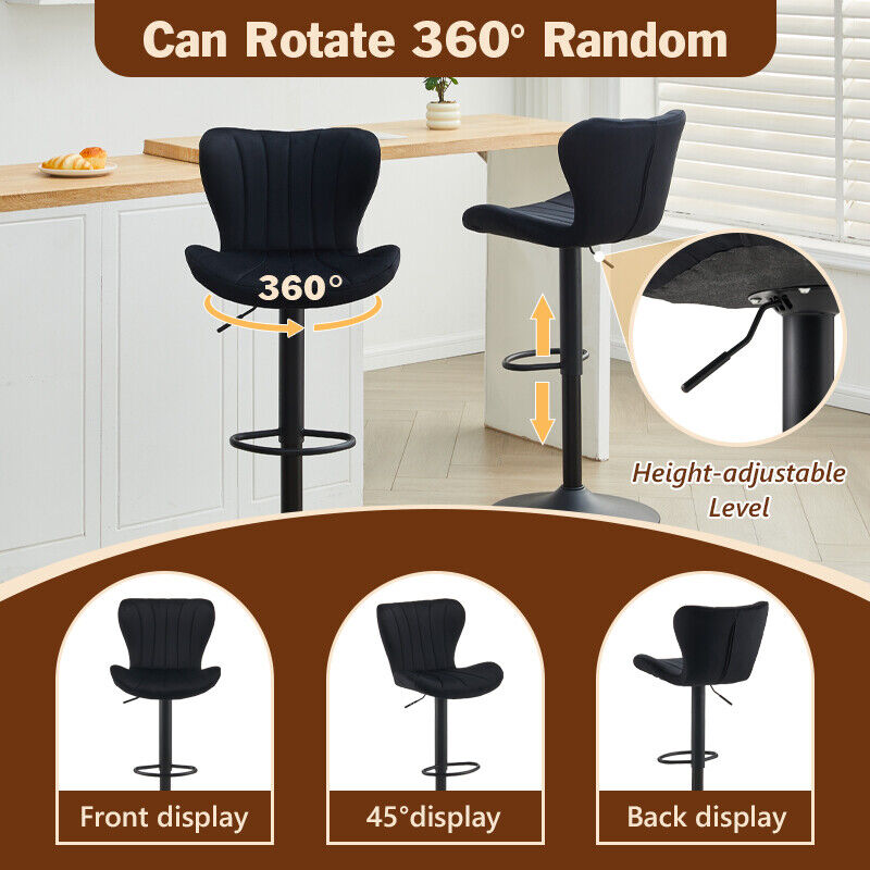 2x 360° Swivel Bar Stools Velvet Gas Lift Chairs Kitchen Pub Chair