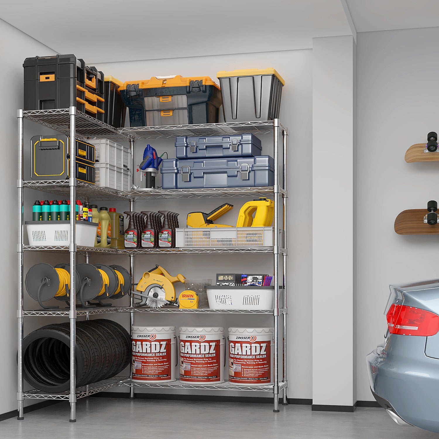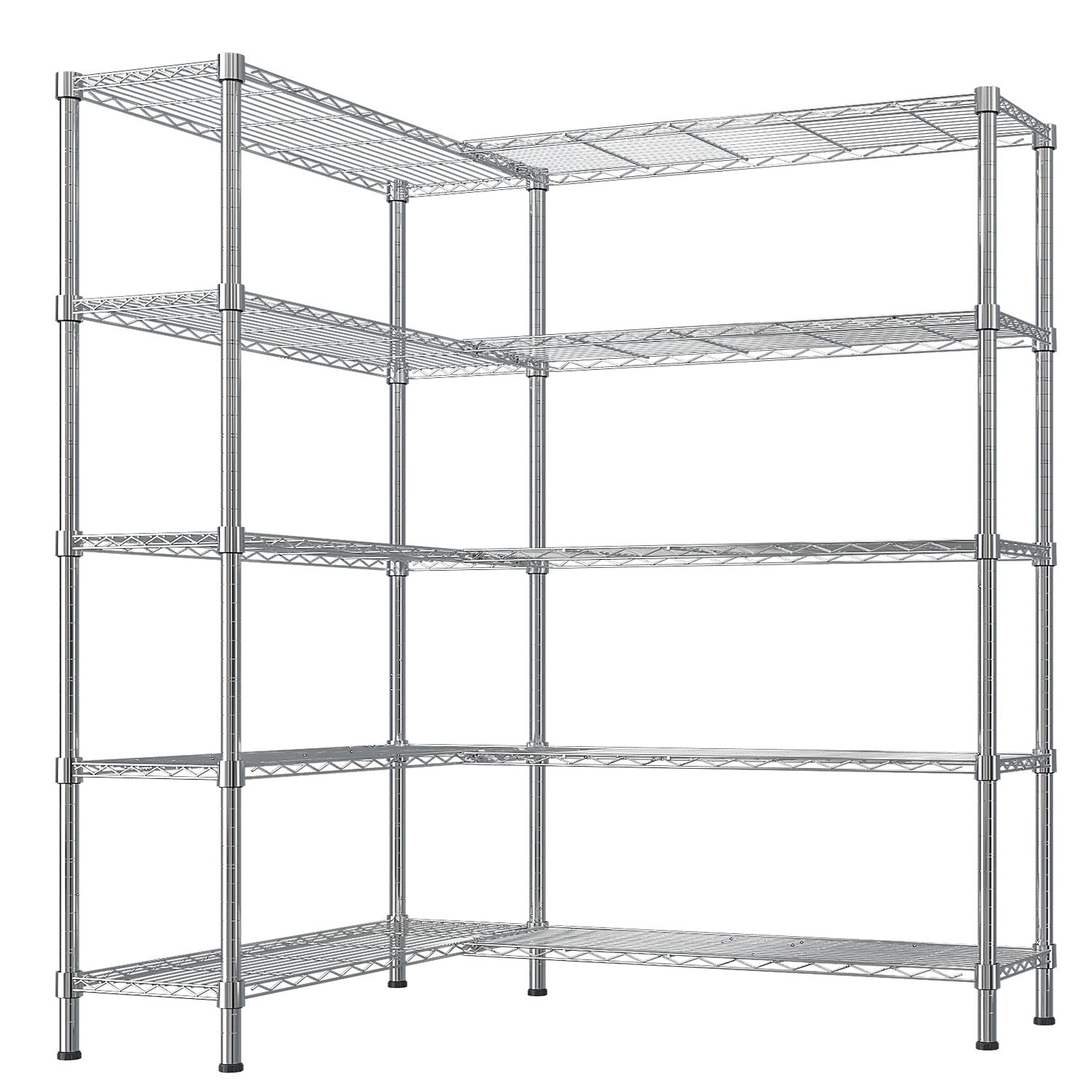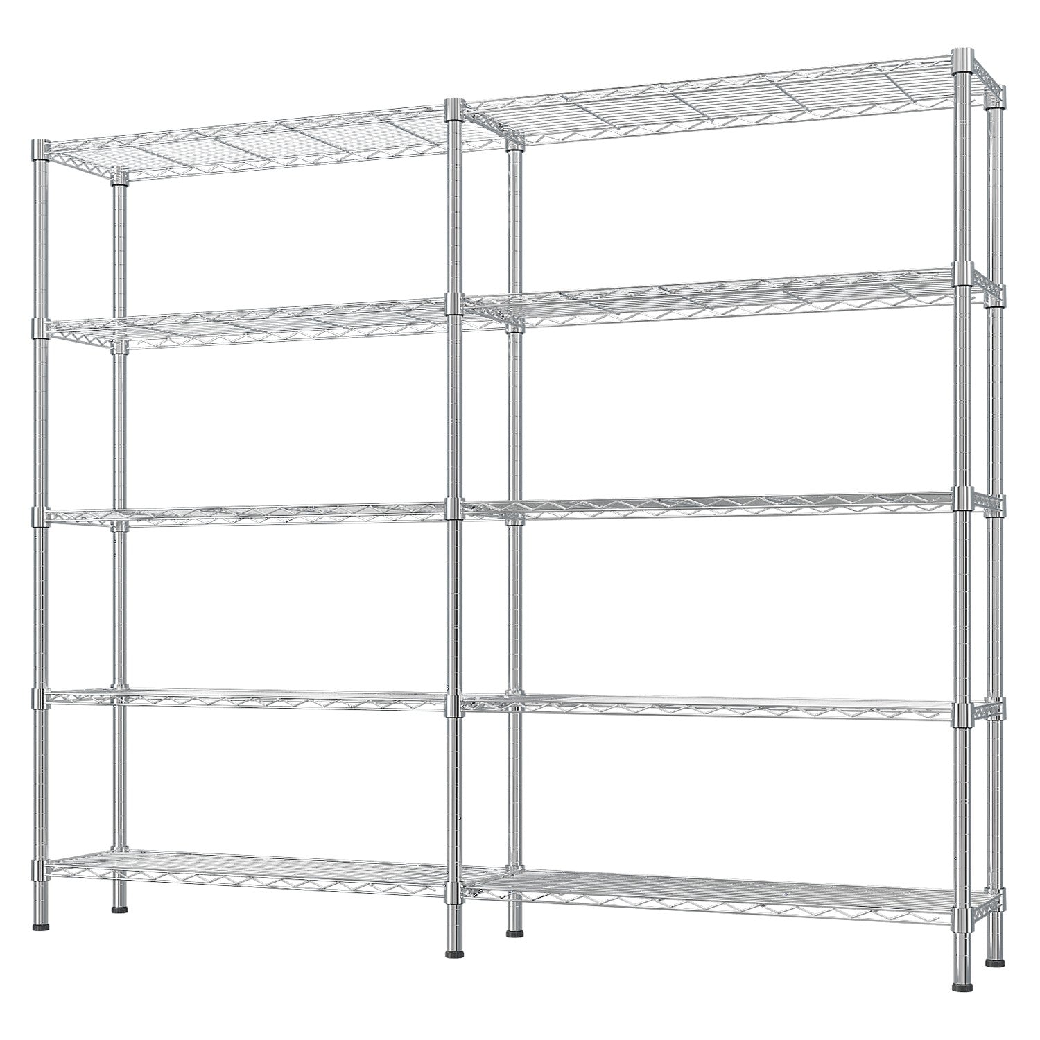 2x 5 Tier Adjustable Wire Shelving Units Black 4 Shelf Kitchen Storage Racking