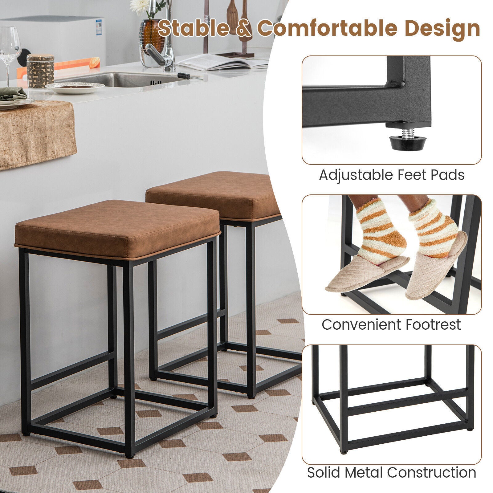 2X 60cm Counter Height Stools Metal Frame Modern Square Pub Bar Stools Brown