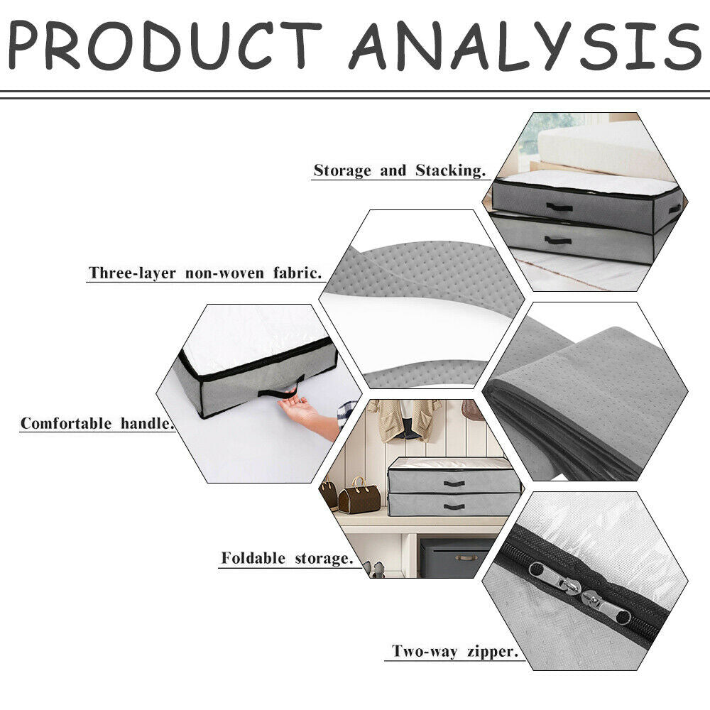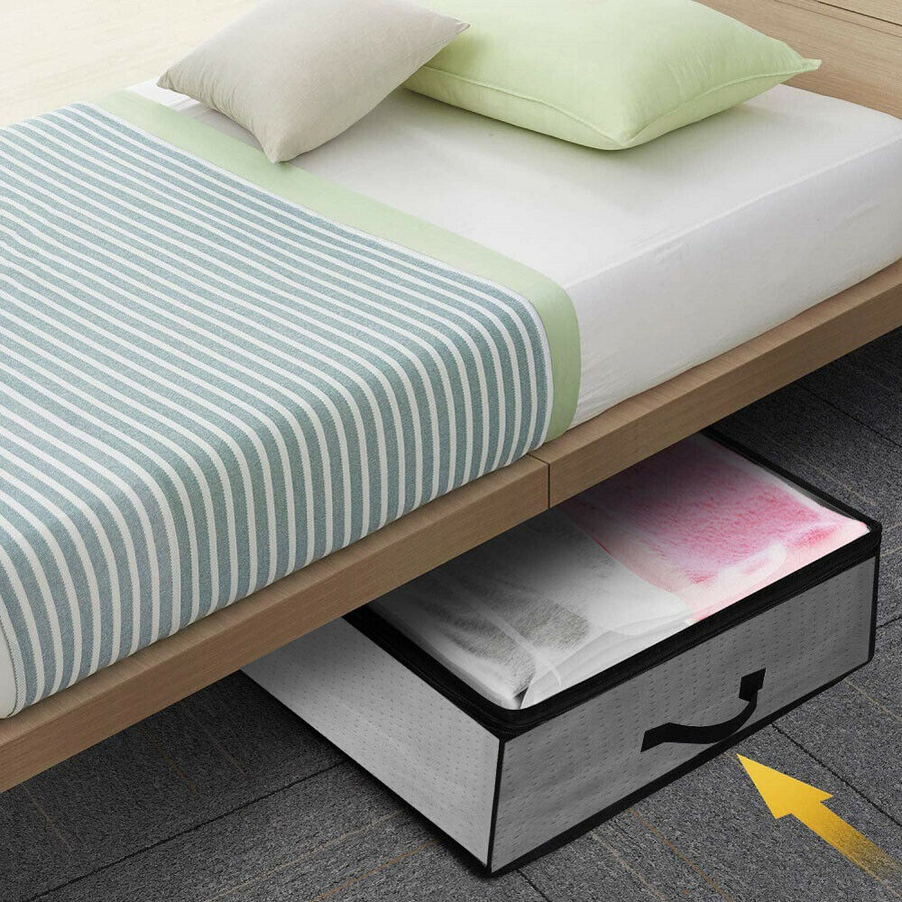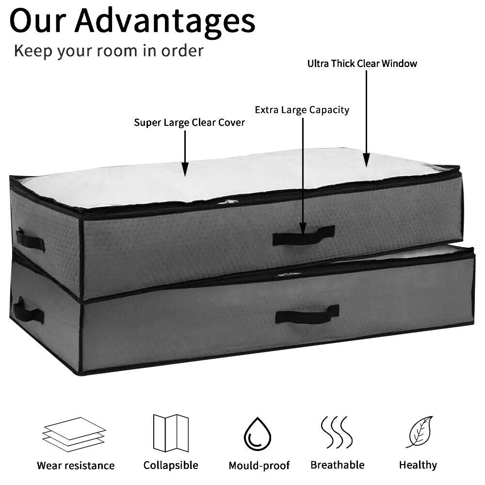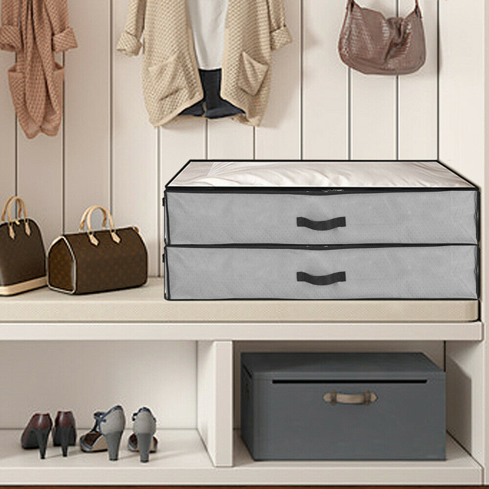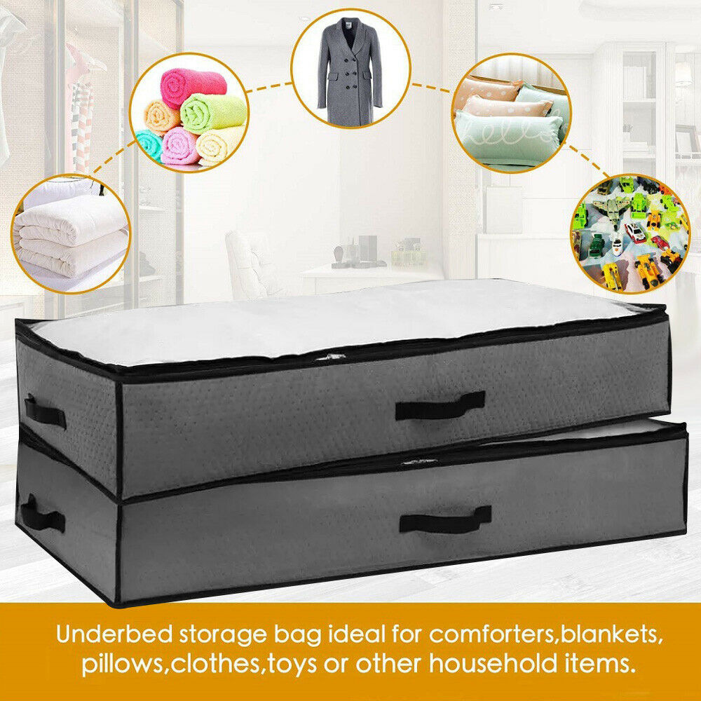 2X 90L Underbed Clothes Storage Bags Zipped Organizer Wardrobe Cube Closet Boxes