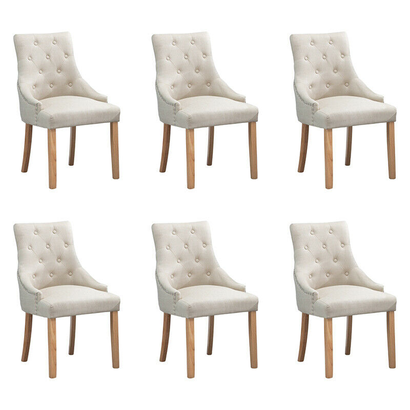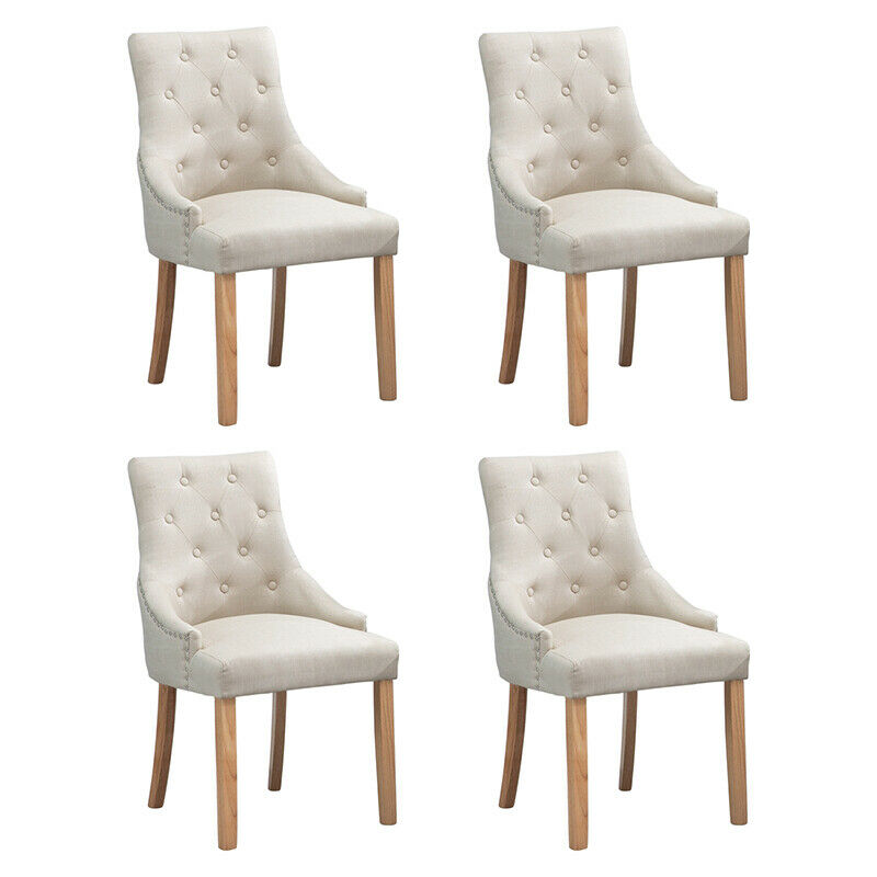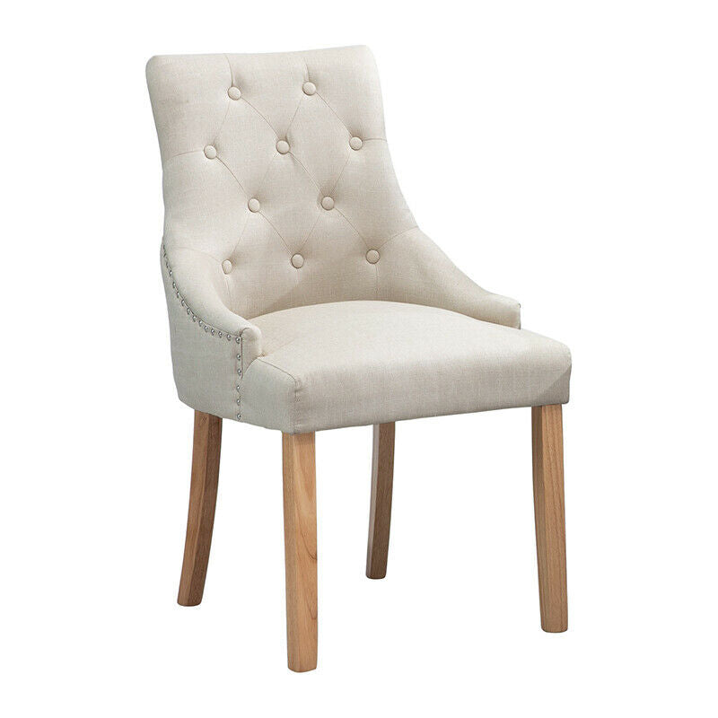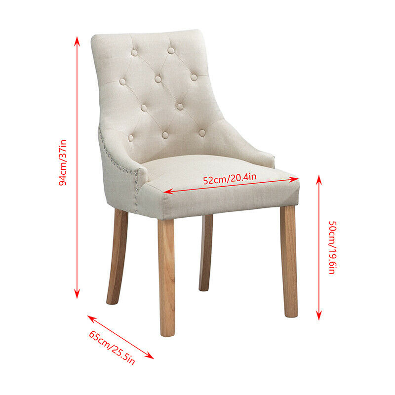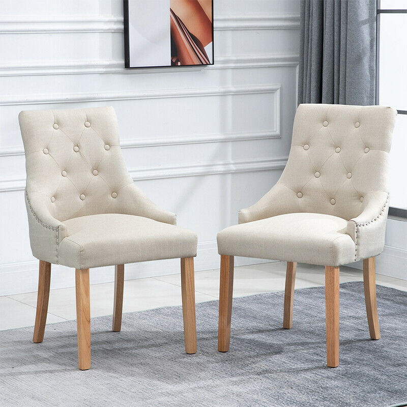 2x Accent Dining Chairs Fabric Upholstered Button Tufted Lounge Room Home Beige
