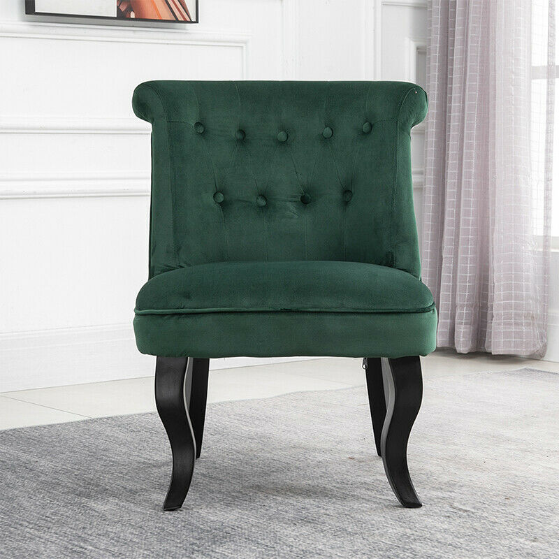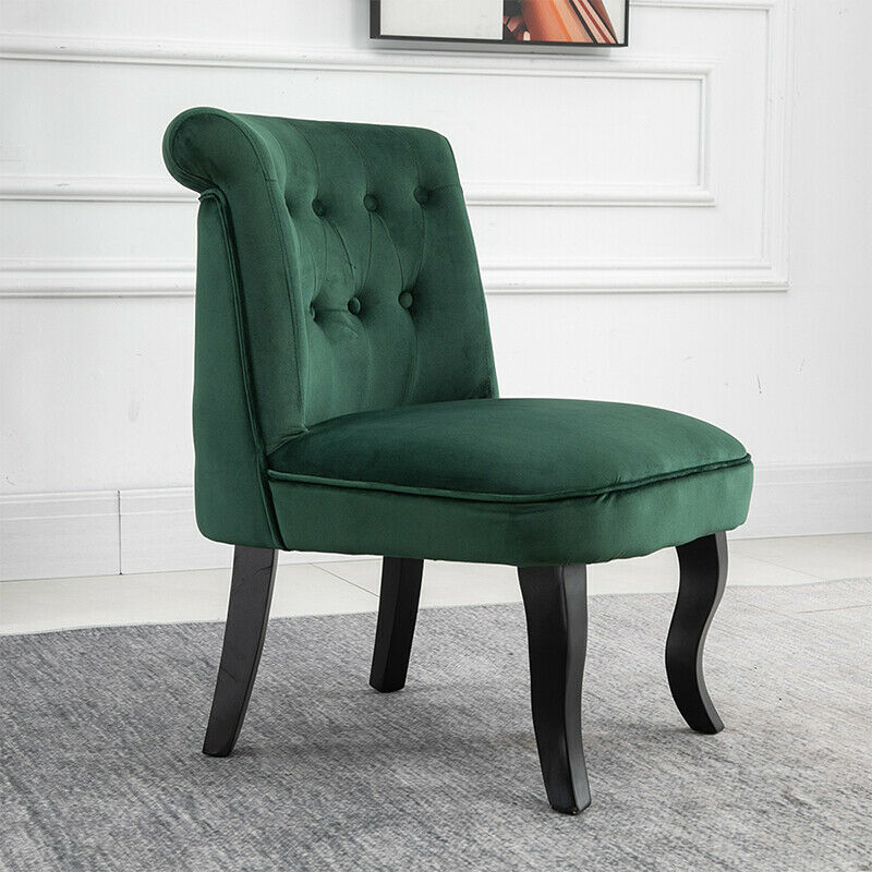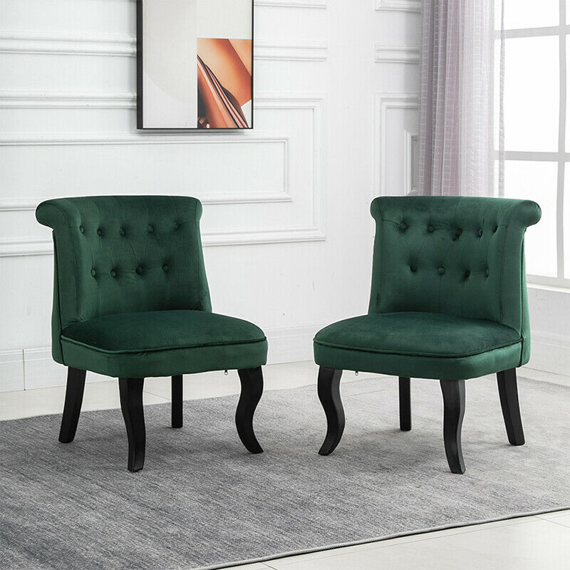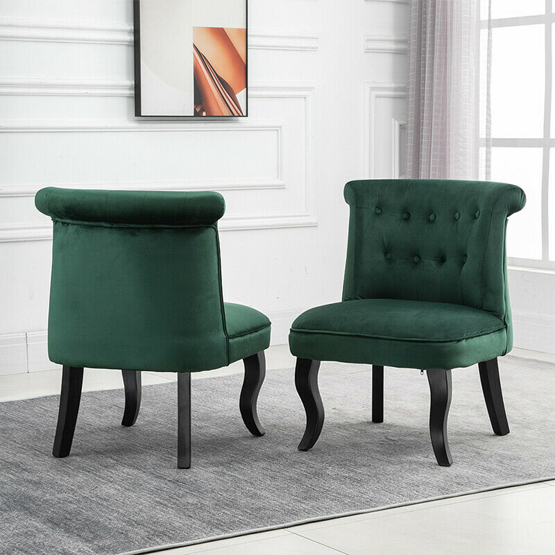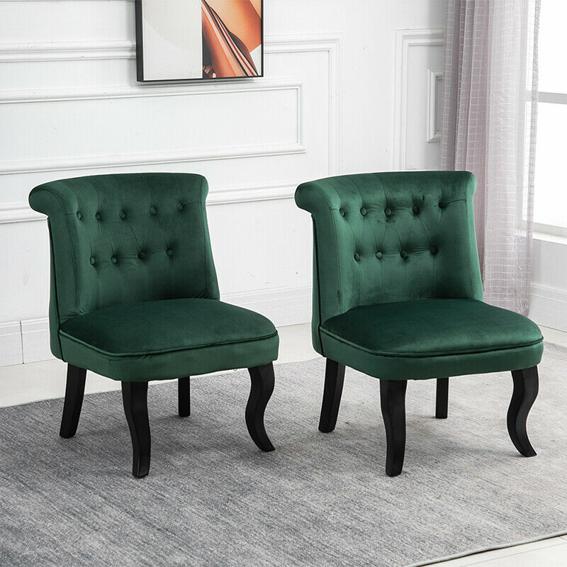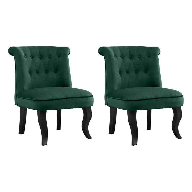 2x Accent Dining Chairs Occiaonal Chair Velvet Green Dining Room Bedroom Wooden