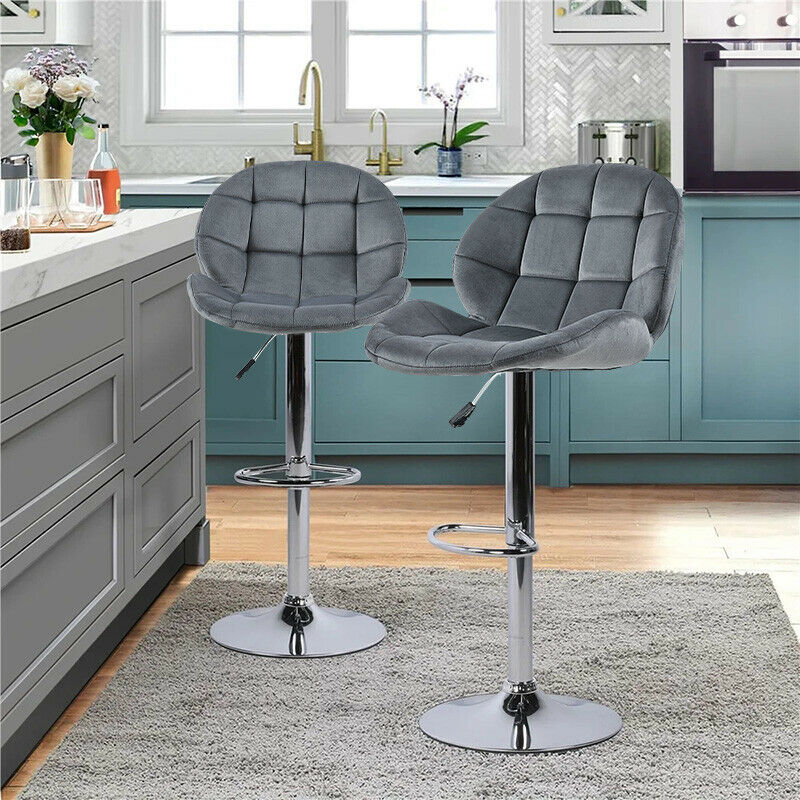 2x Adjustable Breakfast Bar Stools Velvet Swivel Gas Lift Chair Kitchen Pub