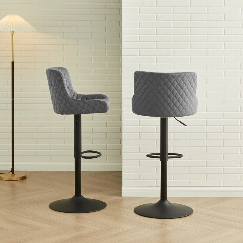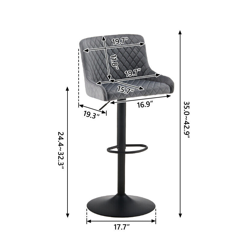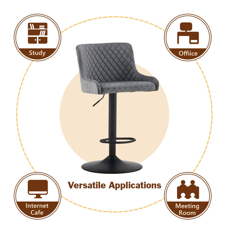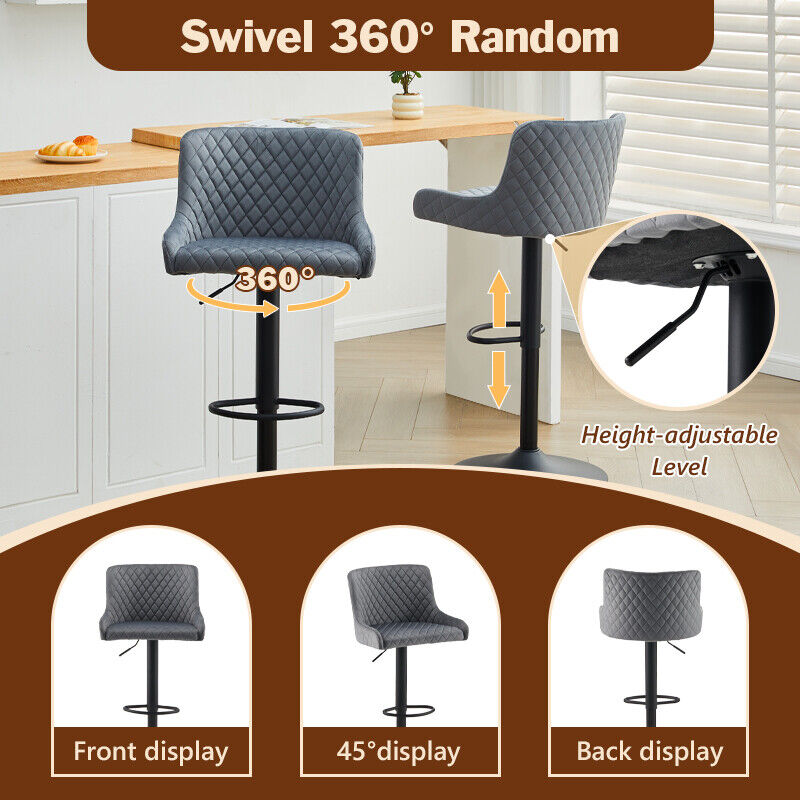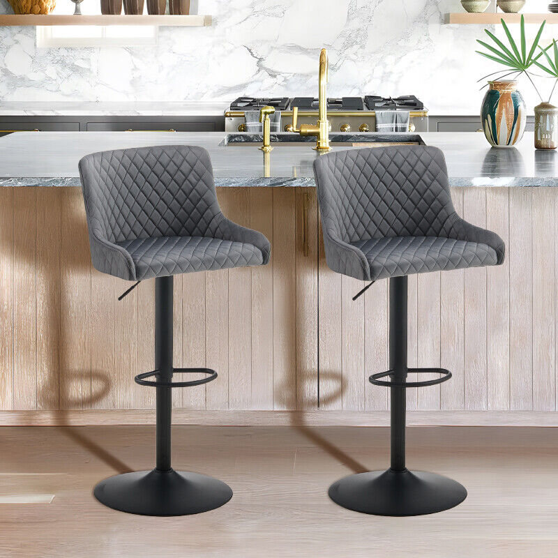 2x Bar Stool Velvet Breakfast Pub Chair 360° Swivel Gas Lift Stool with Backrest