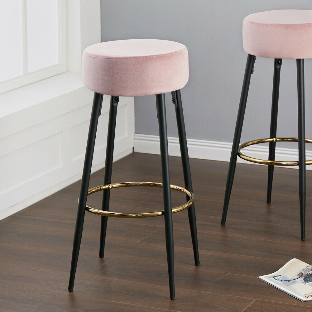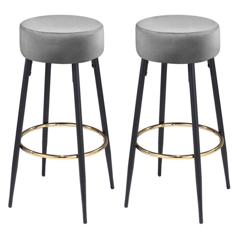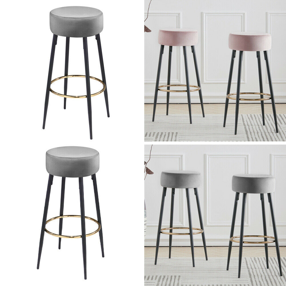 2x Bar Stool Velvet Padded Kitchen Breakfast Bar Stools Metal Leg High Chairs