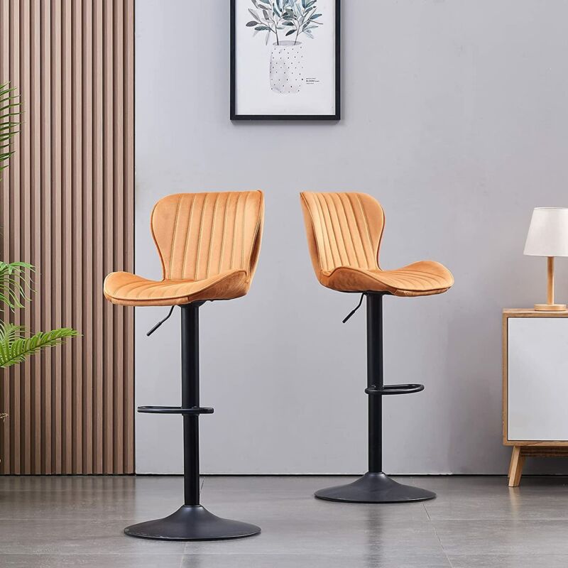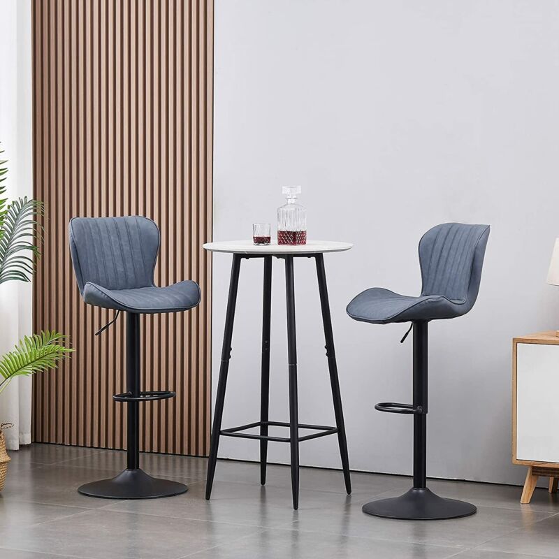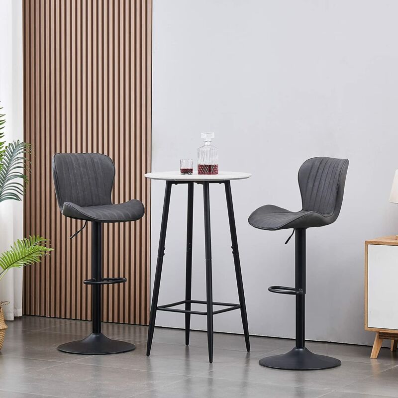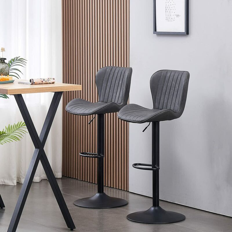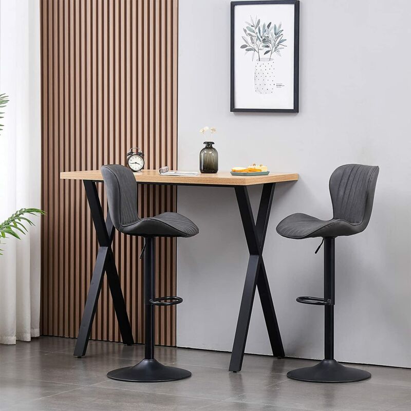 2x Bar Stools Breakfast Comfortable Swivel Gas Lift Kitchen Stool Leather Chairs