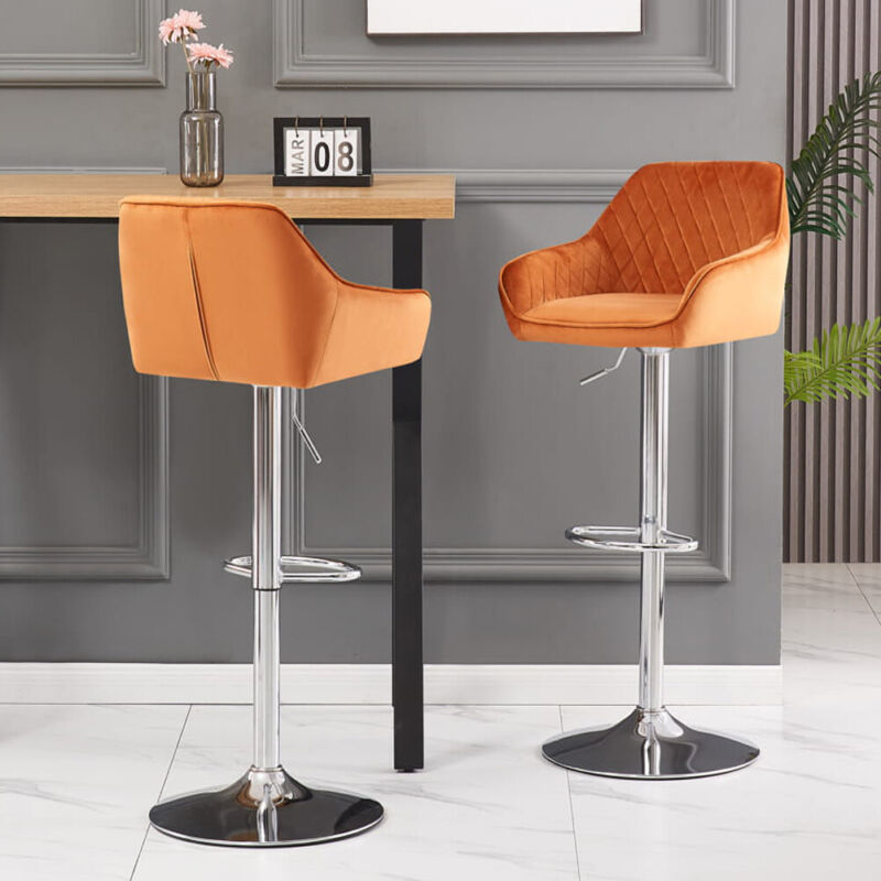 2x Bar Stools Breakfast Comfortable Swivel Gas Lift Kitchen Stool Velvet Chairs