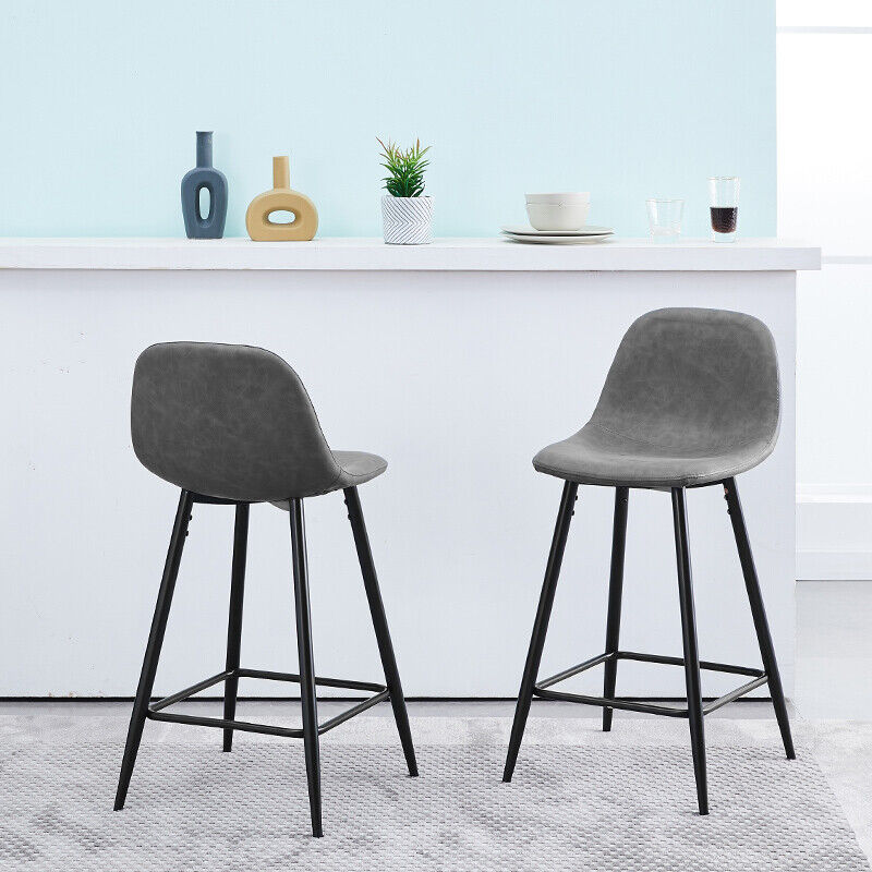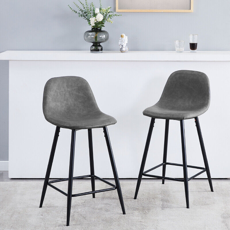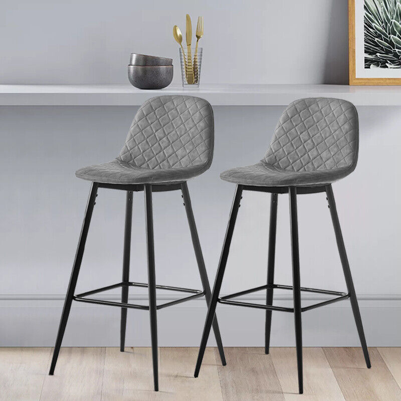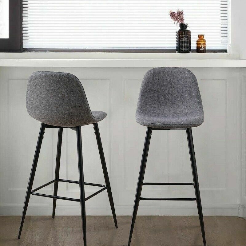 2X Bar Stools Fabric/Faux Leather Pub Chairs Breakfast Kitchen Metal Leg Modern