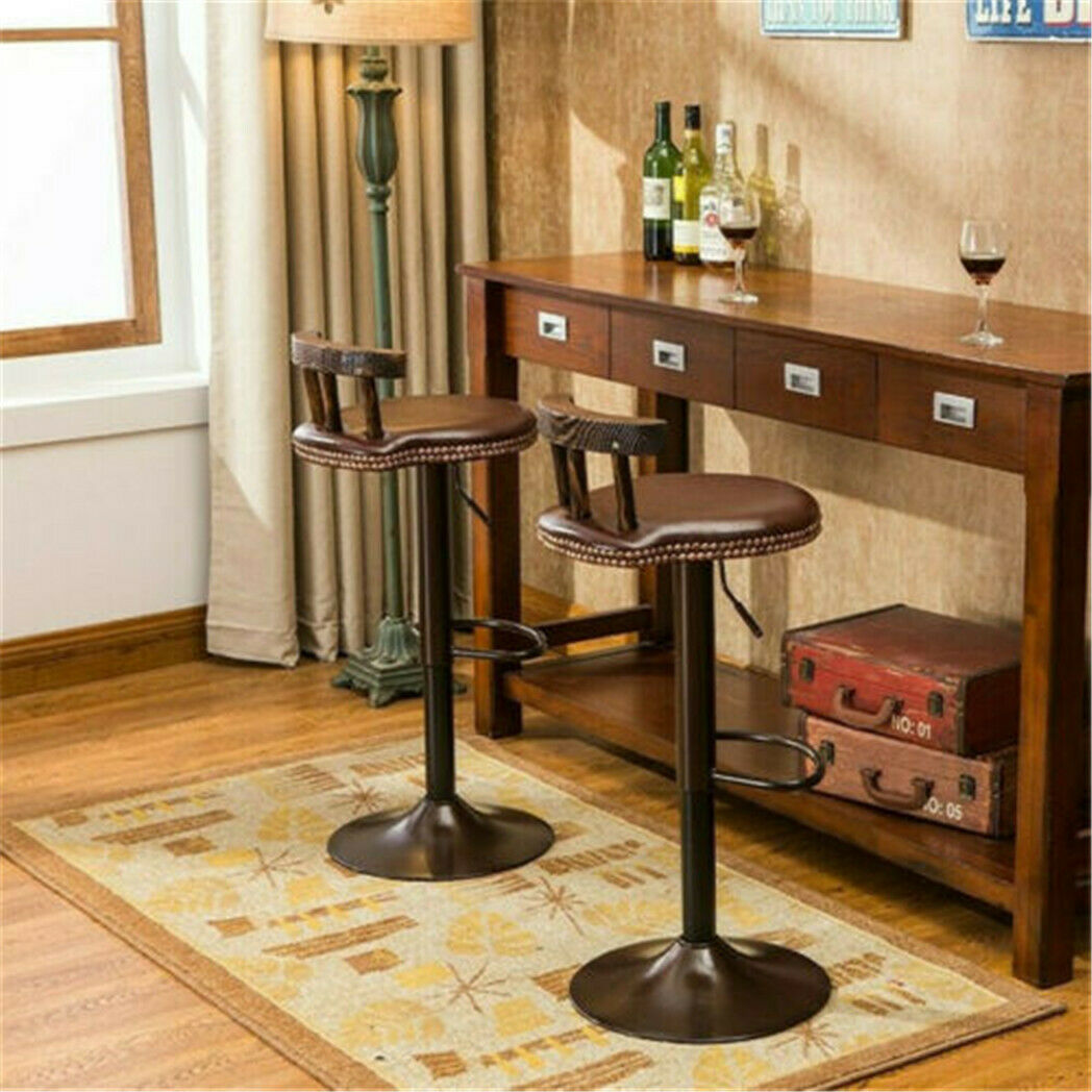 2x Bar Stools Faux Leather Kitchen Cafe Swivel Bar Stool Padded Chair Gas Lift