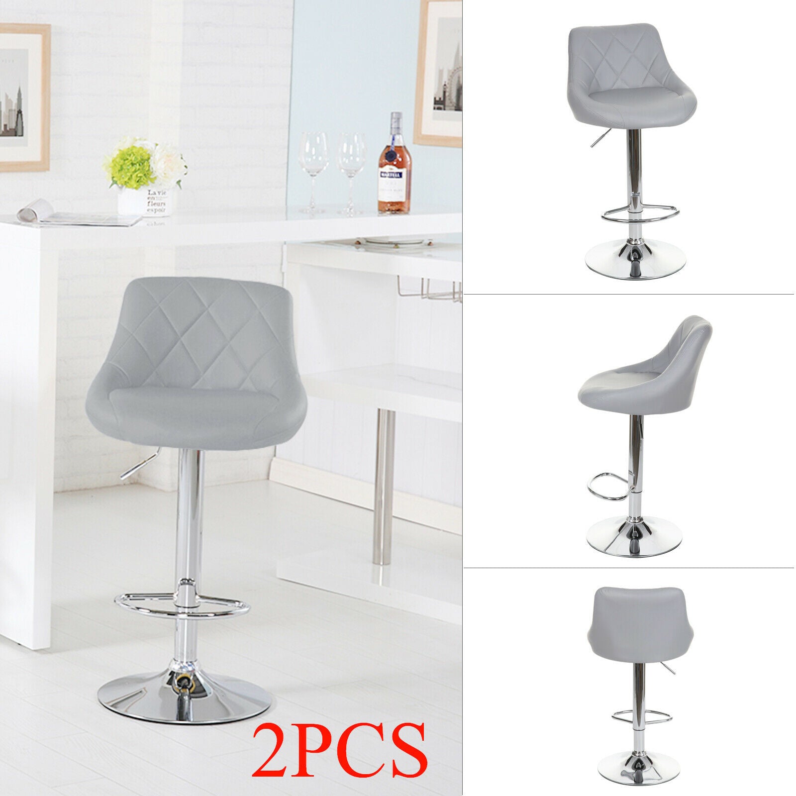 2X Bar Stools Kitchen Swivel Gas Lift Stools Breakfast Pub Chairs Stool UK