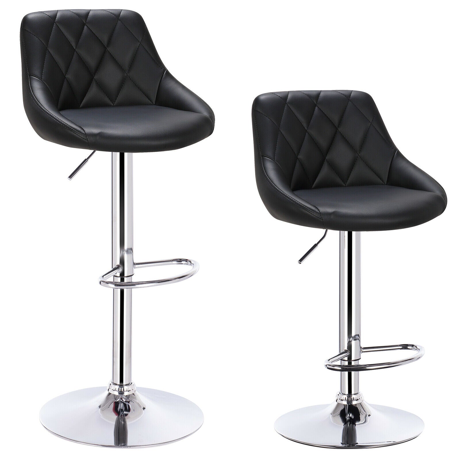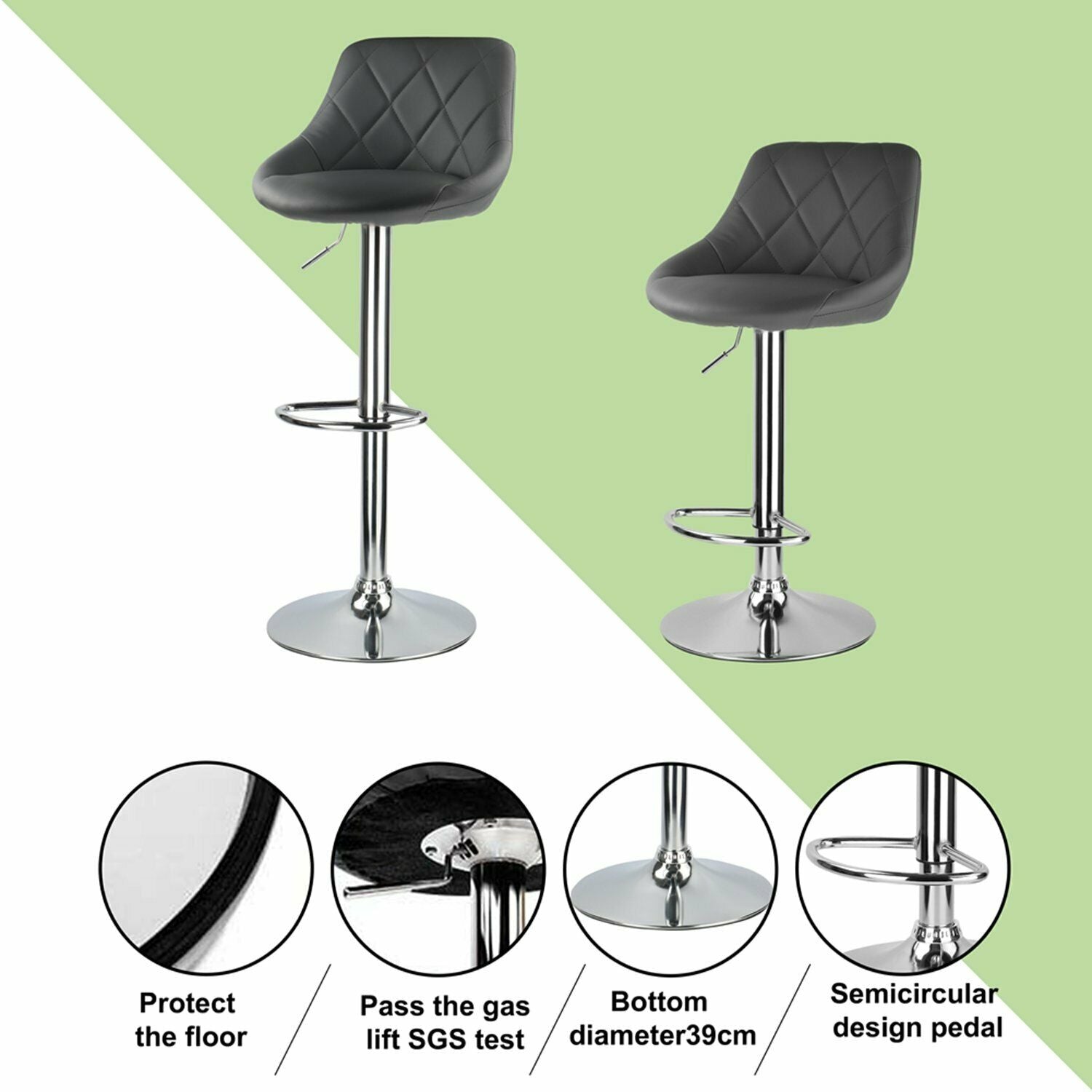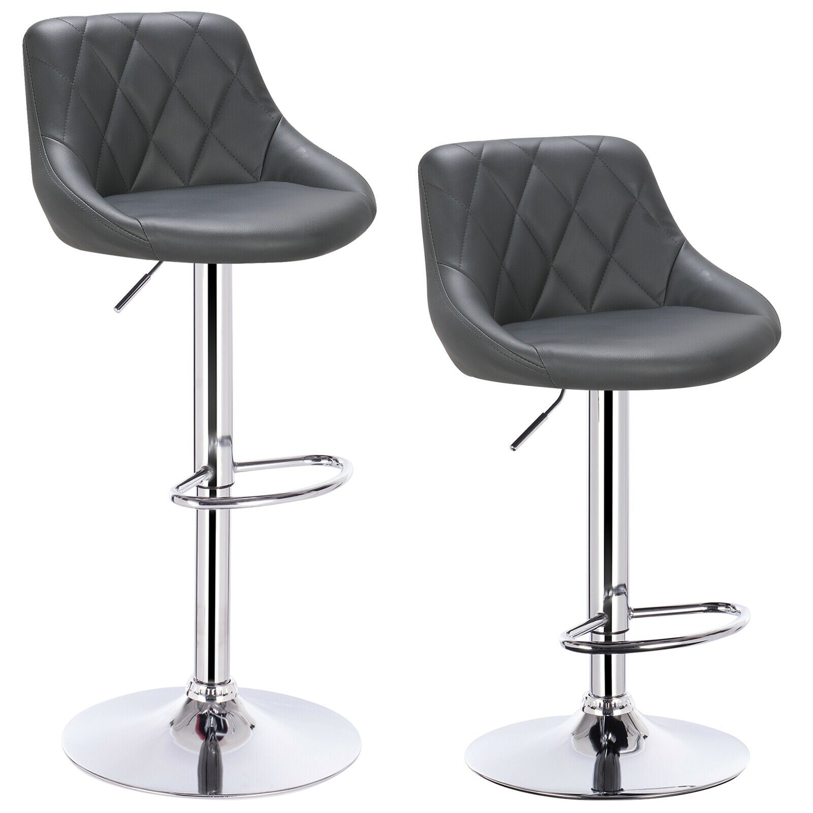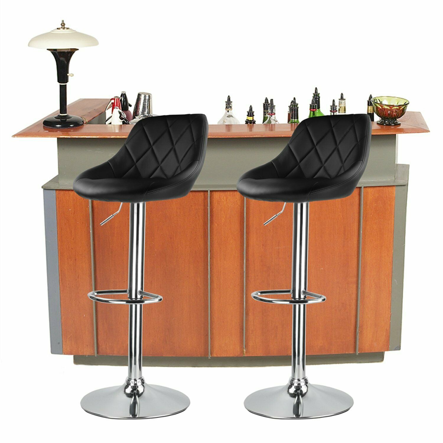 2X Bar Stools Leather Swivel Gas Lift Chair Kitchen Breakfast Pub Black & Grey