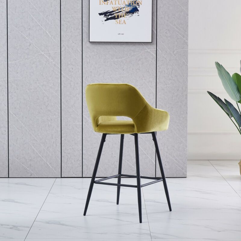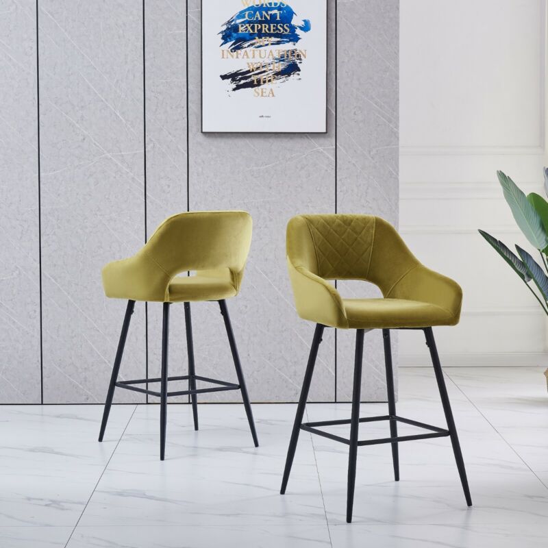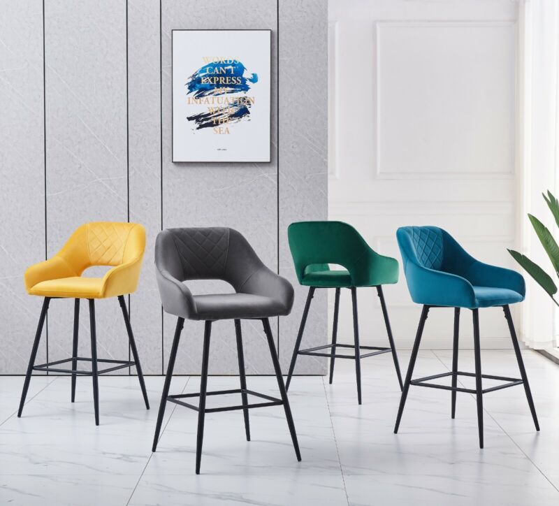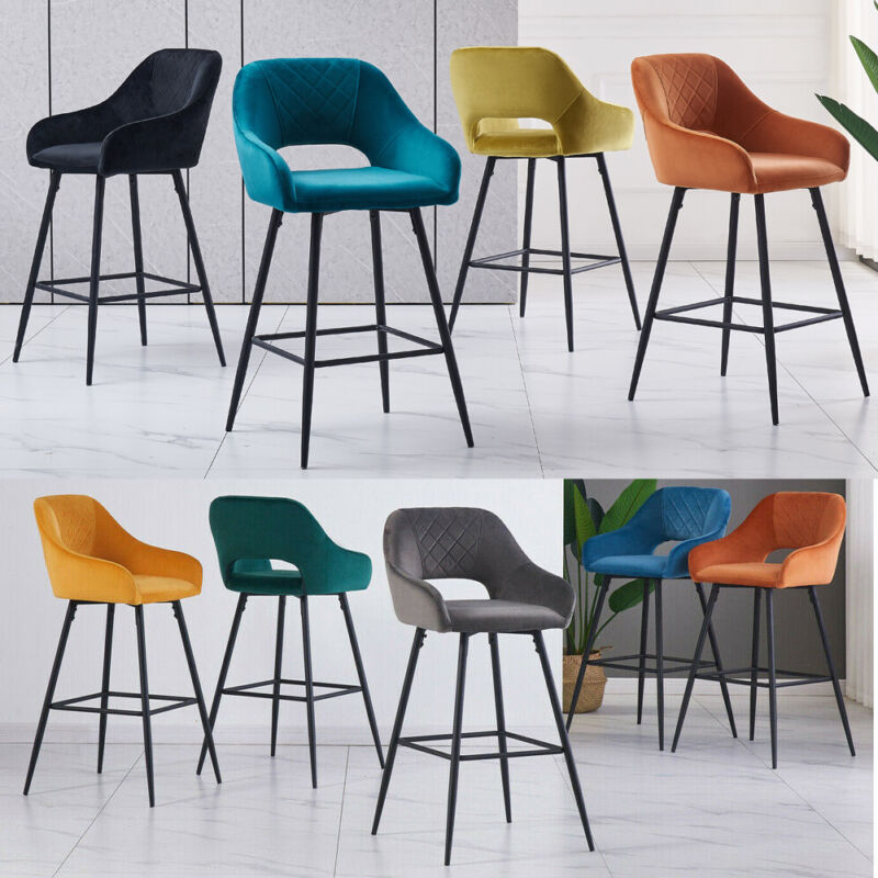 2X Bar Stools Velvet Bar Chairs Metal Legs Breakfast Bar Pub Chair Kitchen Home