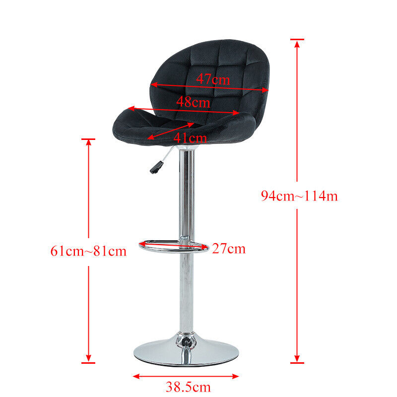 2x Black Velvet Bar Stools Swivel Gas Lift Pub Chair Stool Adjustable Chrome Leg