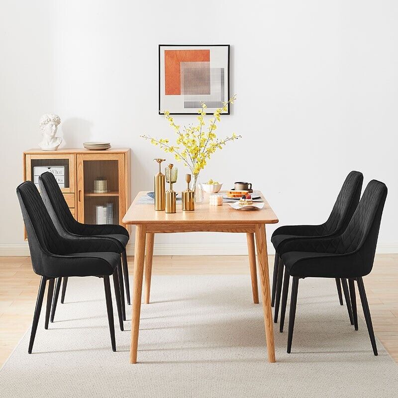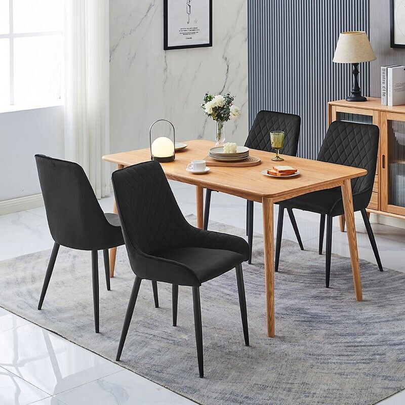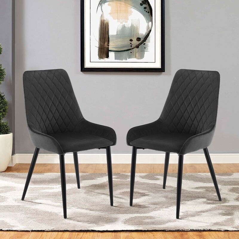 2x Black Velvet Cushion Seat Back Dining Chairs Set Metal legs Reception Chair