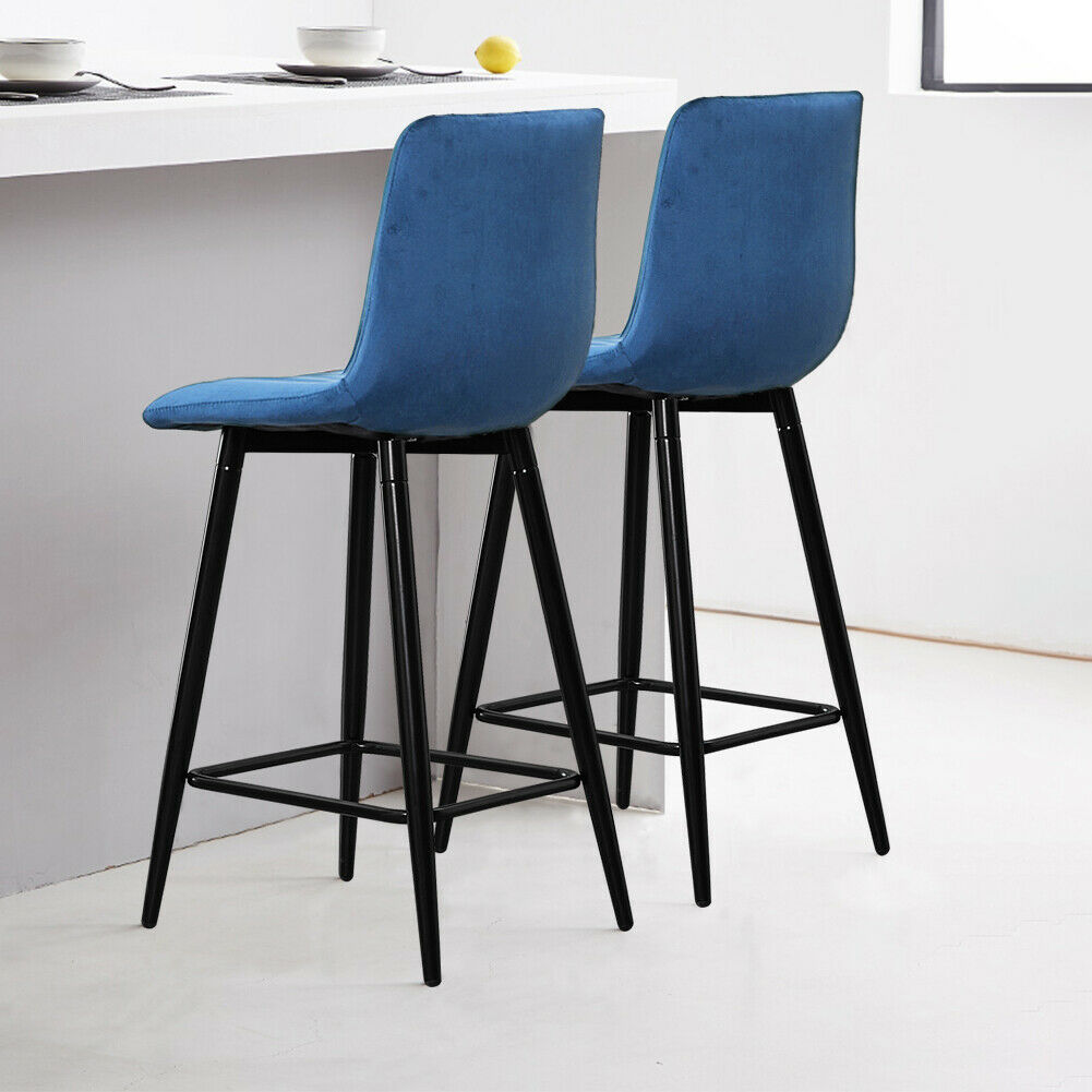 2X Blue Velvet Bar Stools Breakfast Stool Kitchen Pub Chairs Padded 65 cm Seat