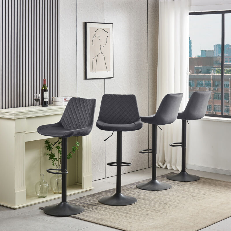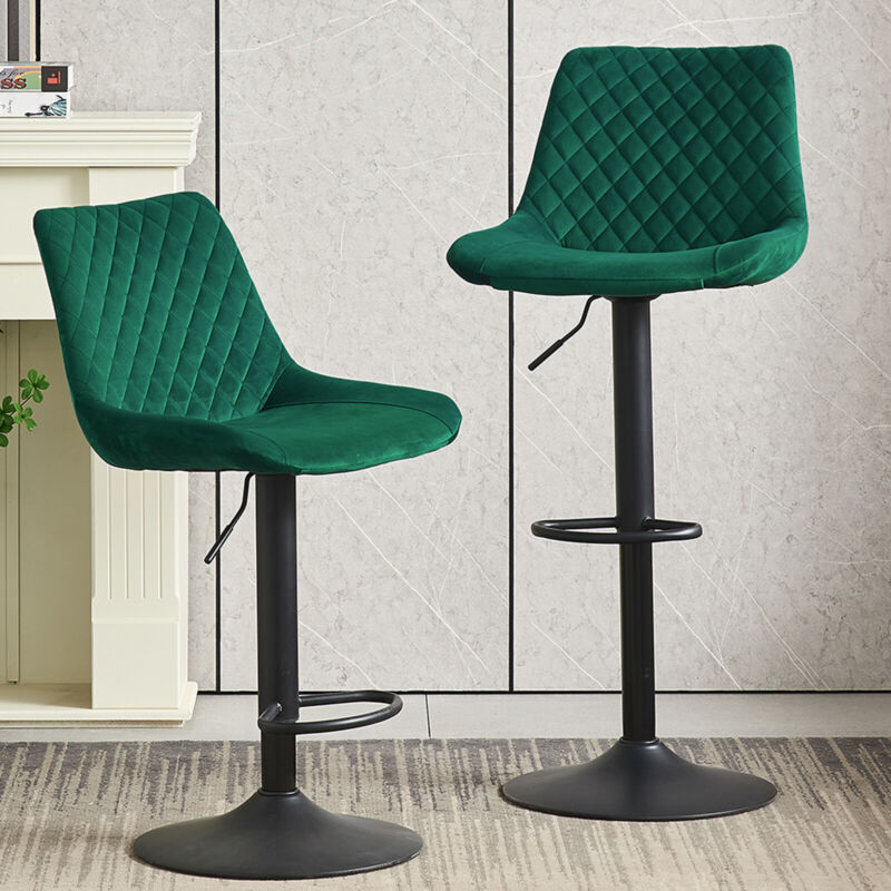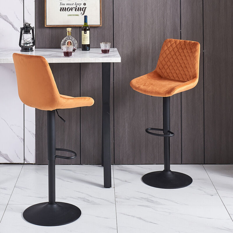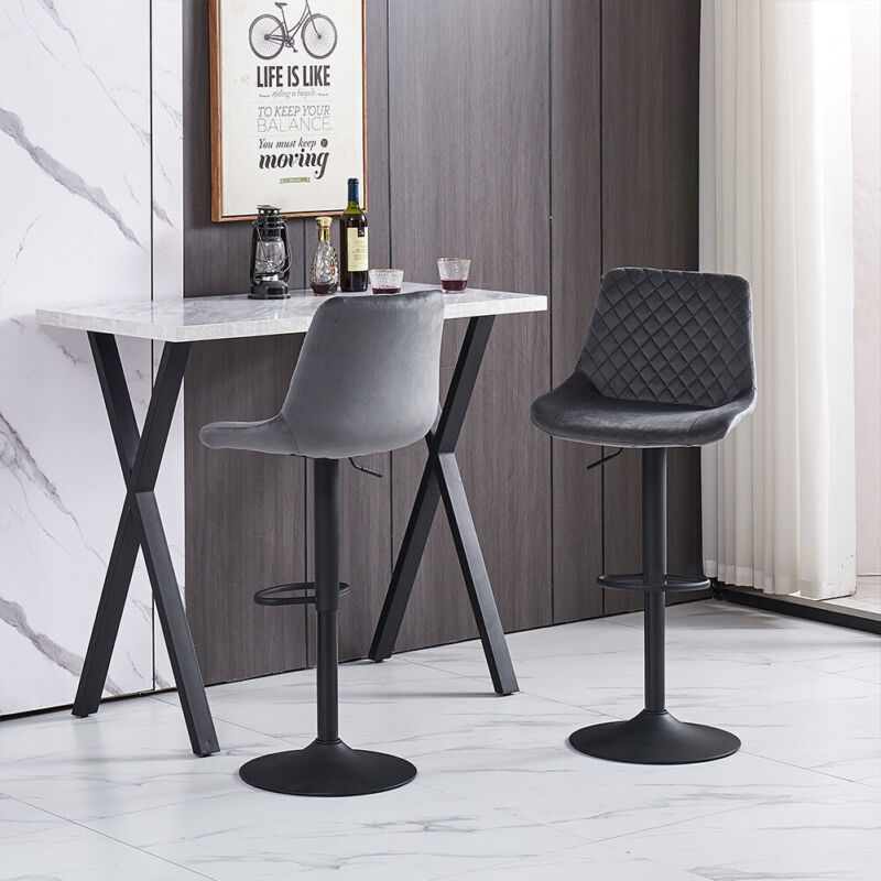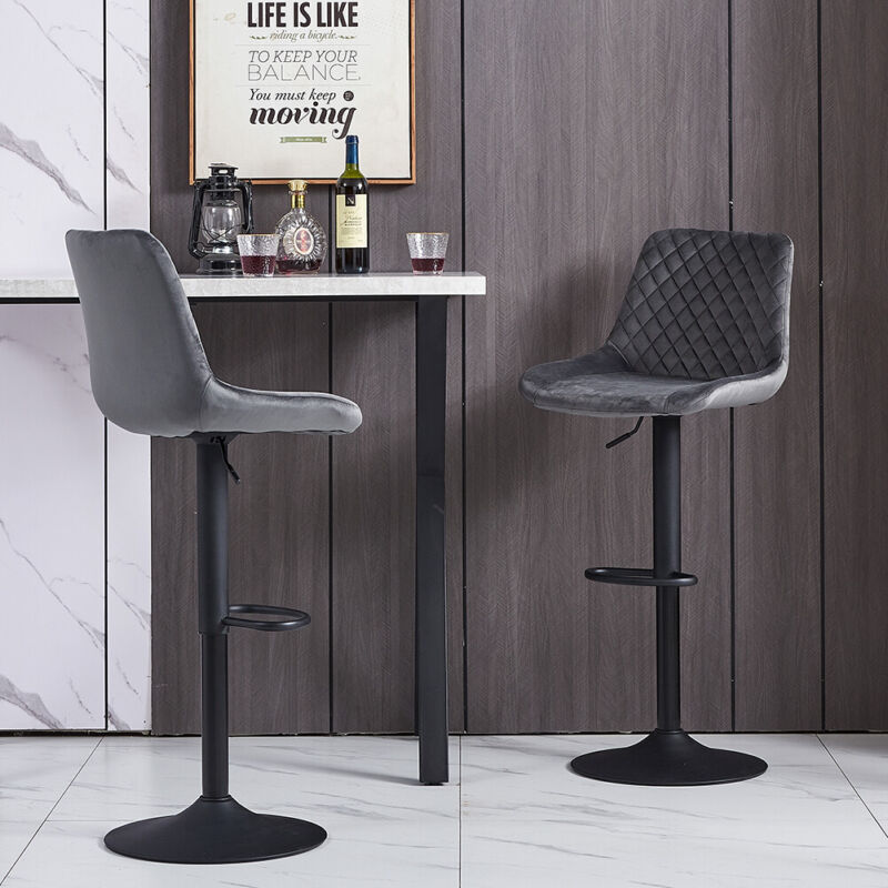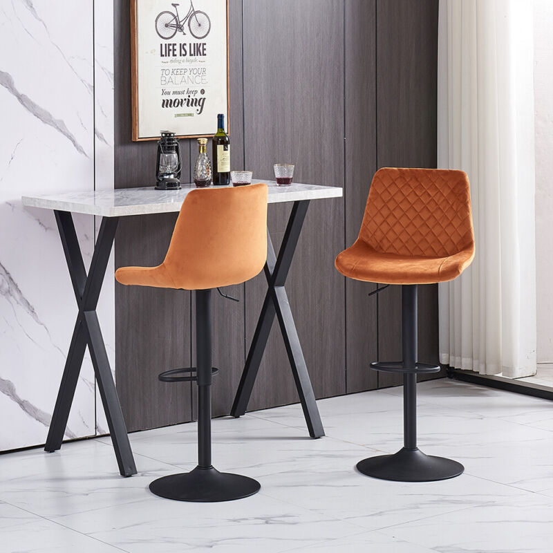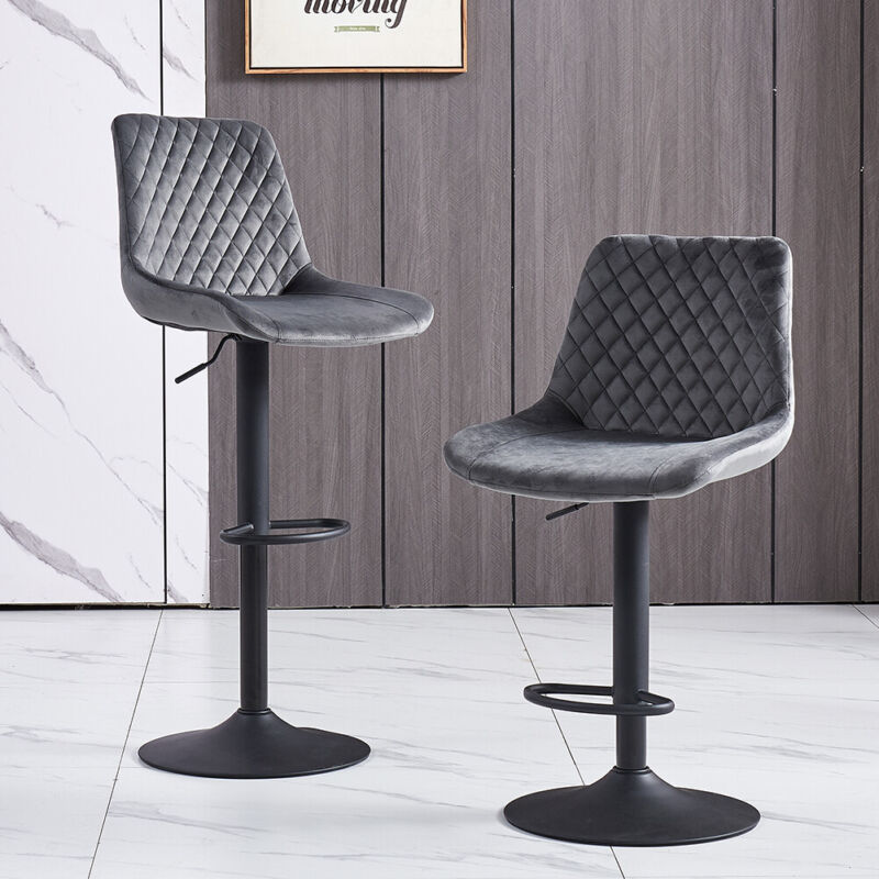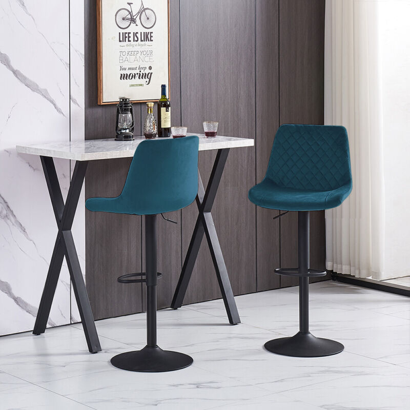 2x Breakfast Bar Stools Velvet Swivel Gas Lift Chairs Kitchen Pub Cafe Barstools