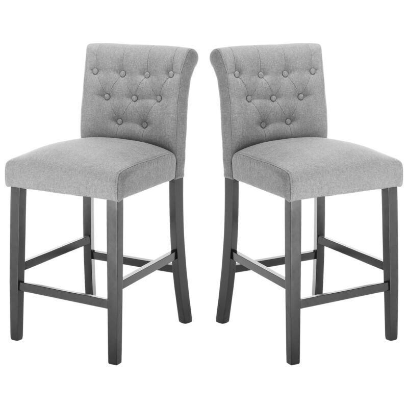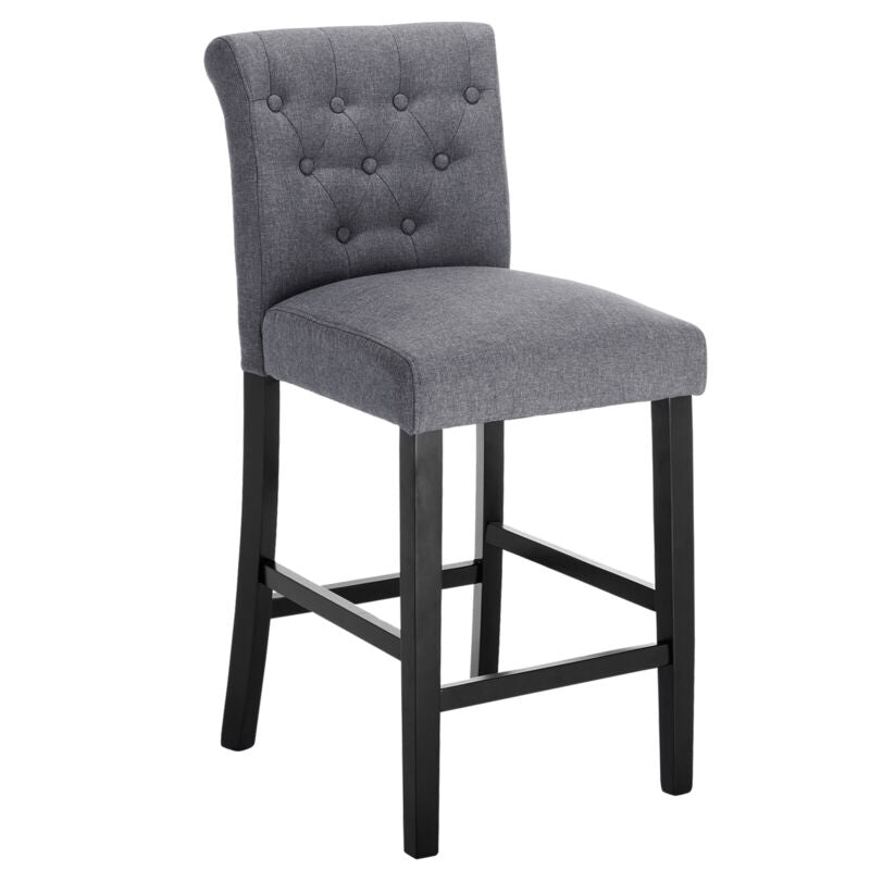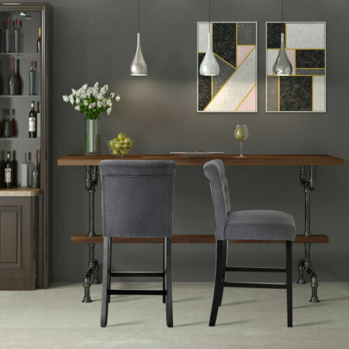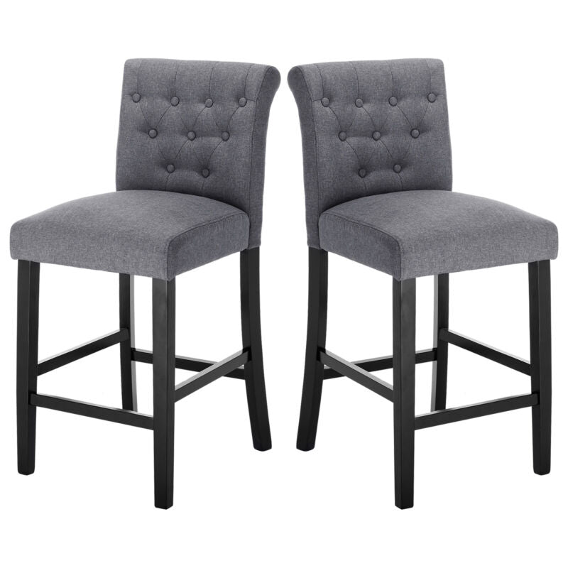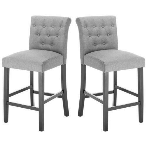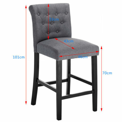 2x Chairs Bar Stools Bar Chairs linen Wood Legs Barstools High Stools grey