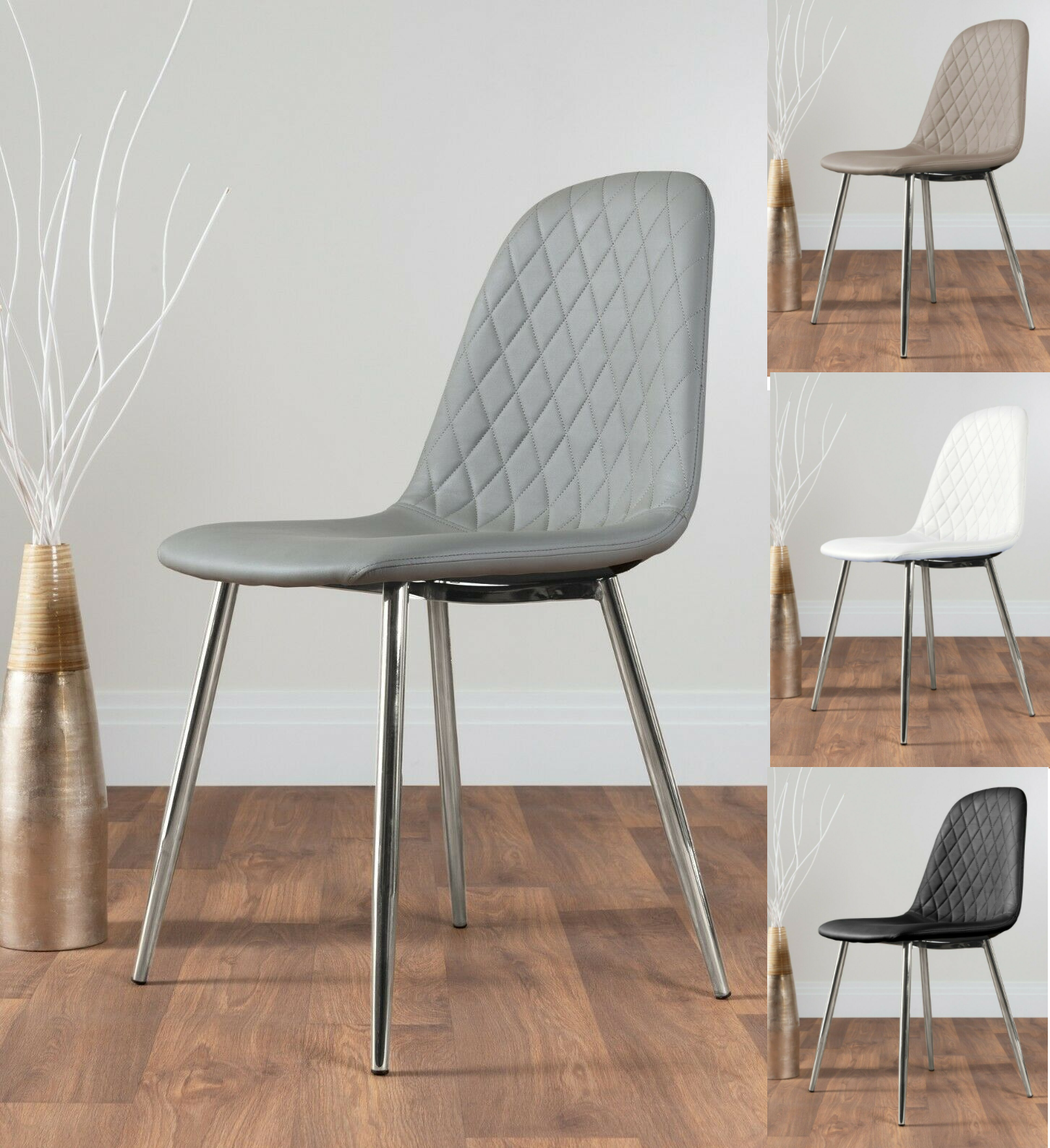 - 2x CORONA Faux Leather Modern Dining Chairs Seats Chrome SILVER GOLD Metal Legs
