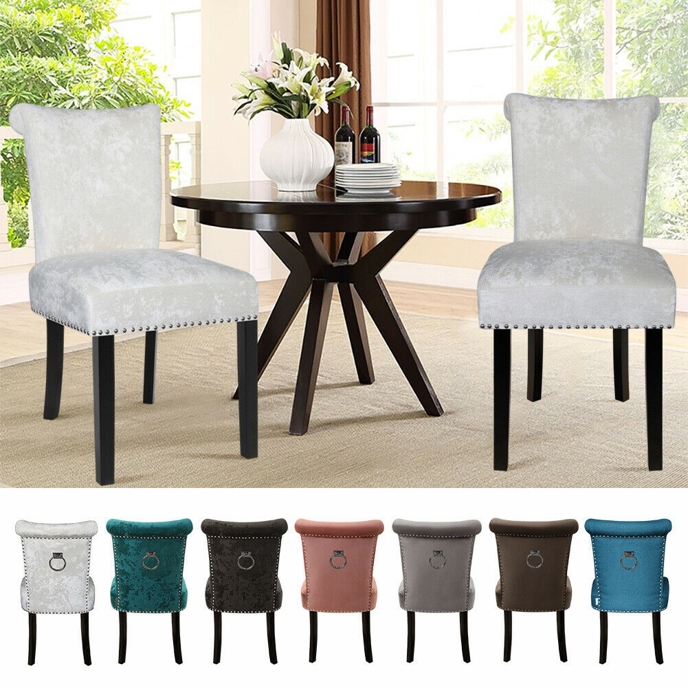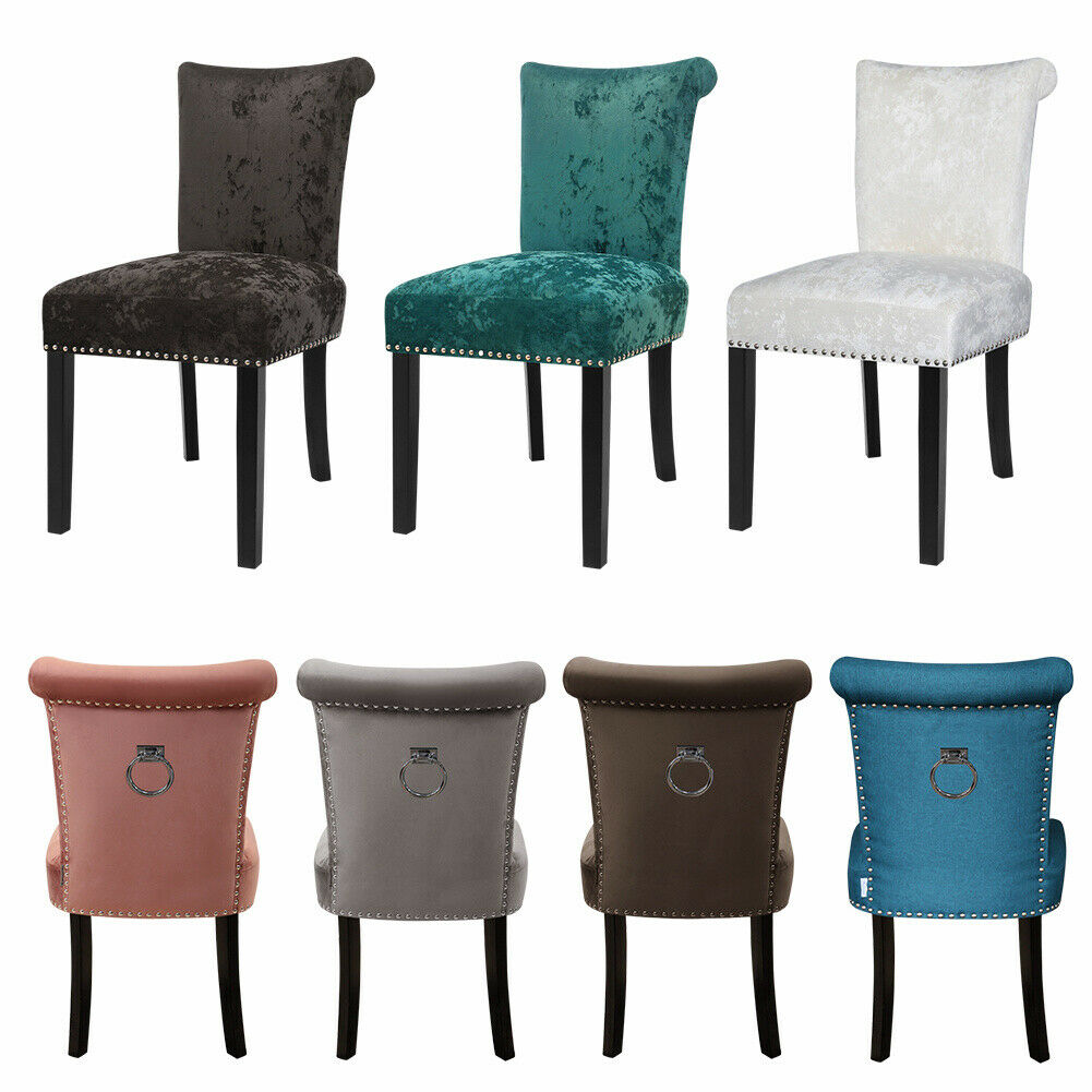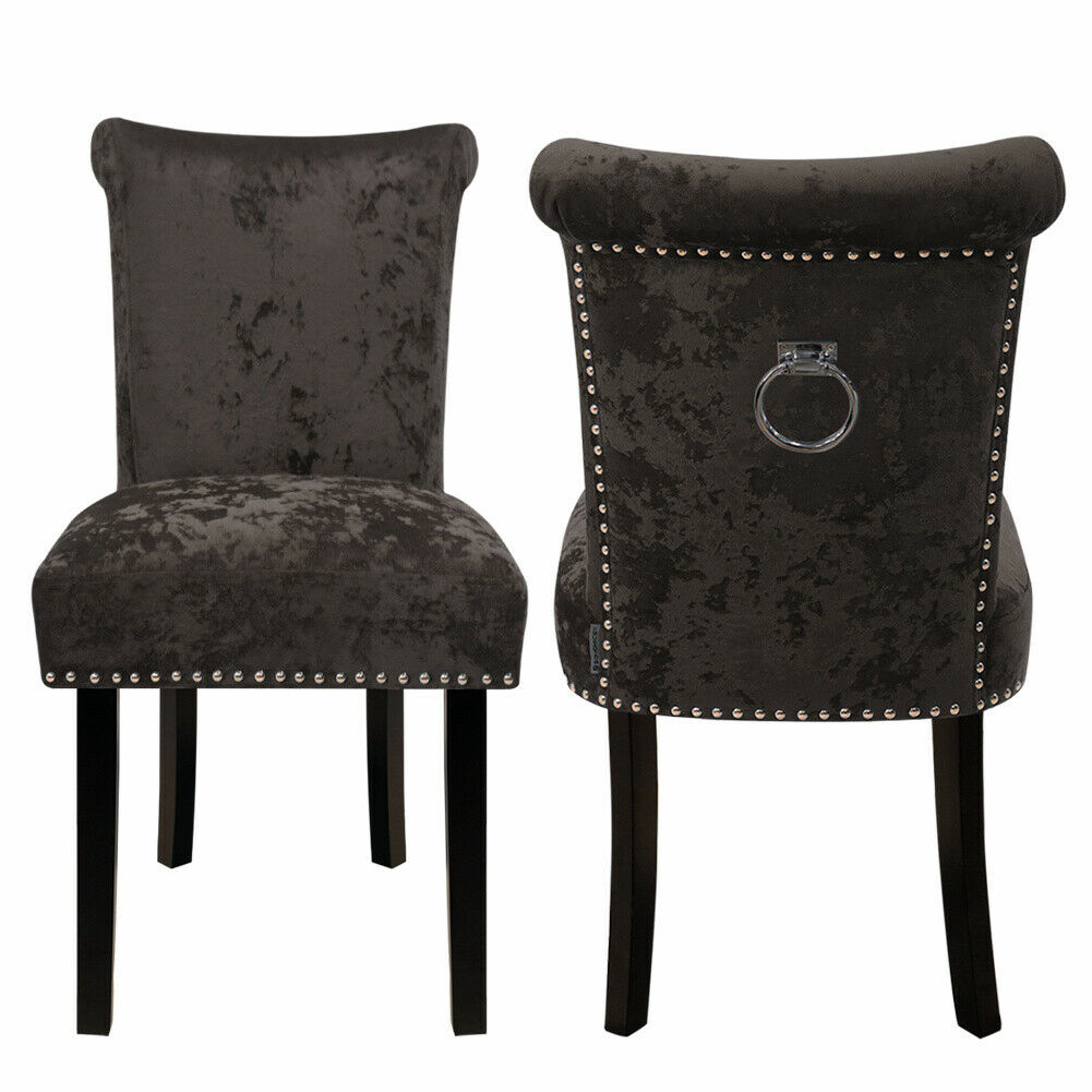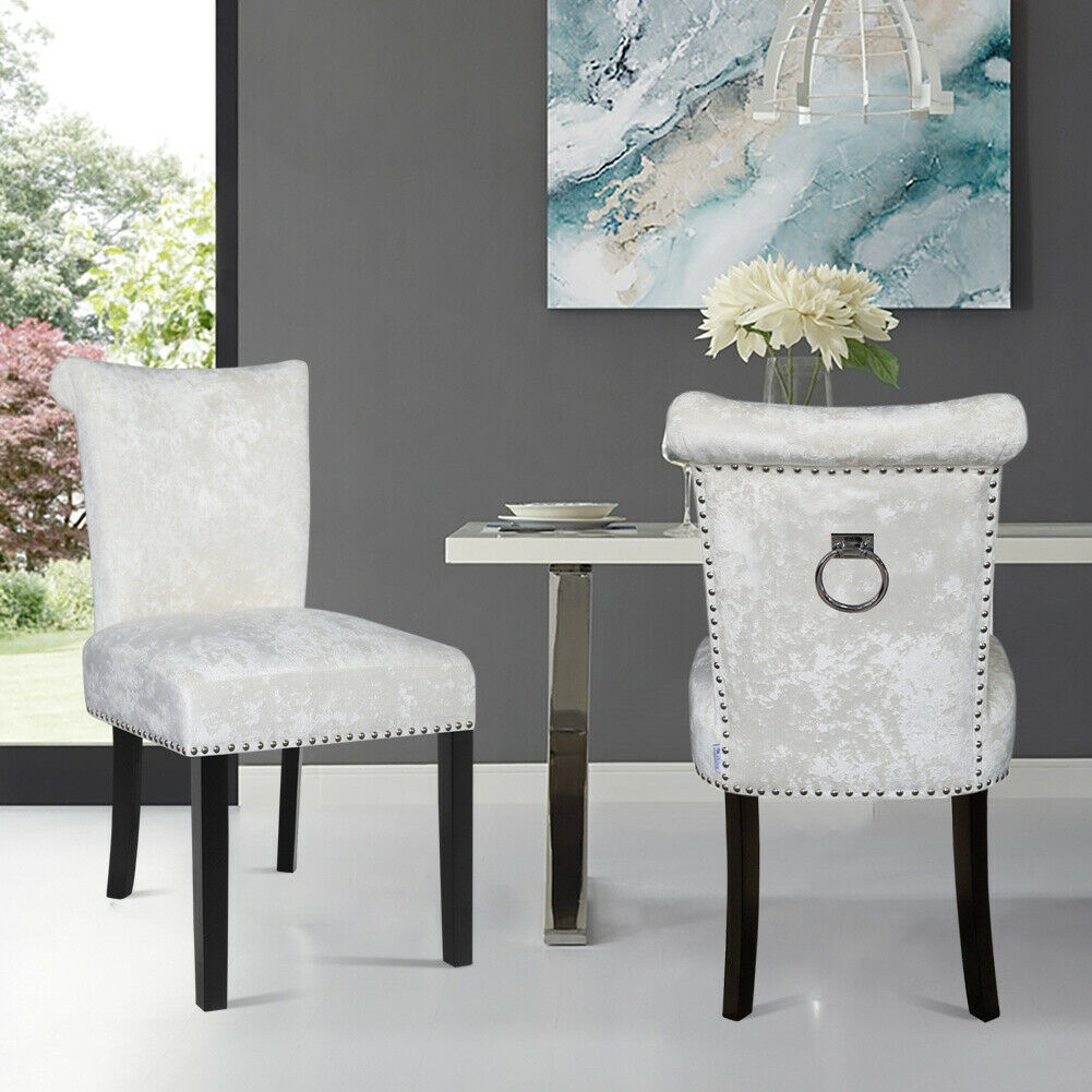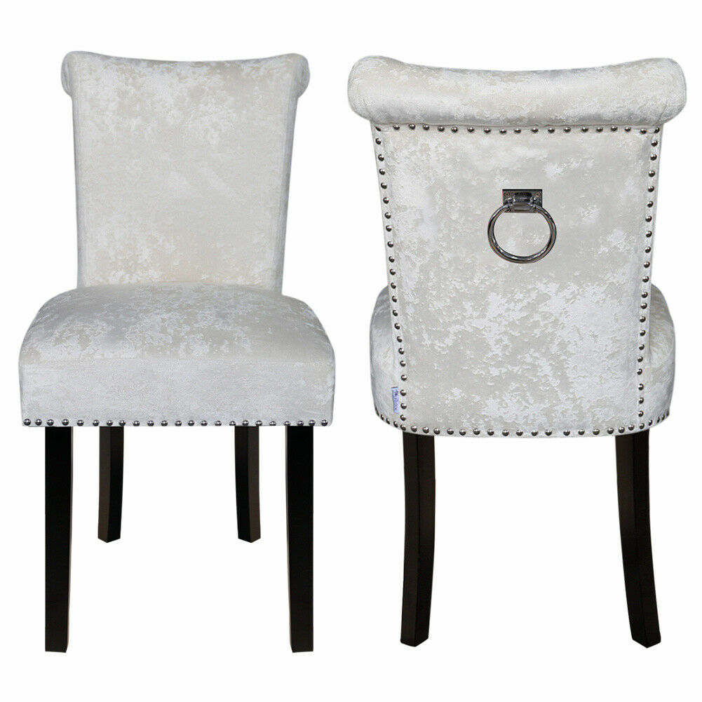 2x Crushed Velvet Dining Chairs Knocker Back/Ring Back Padded Seat Kitchen Chair