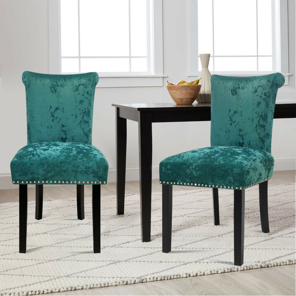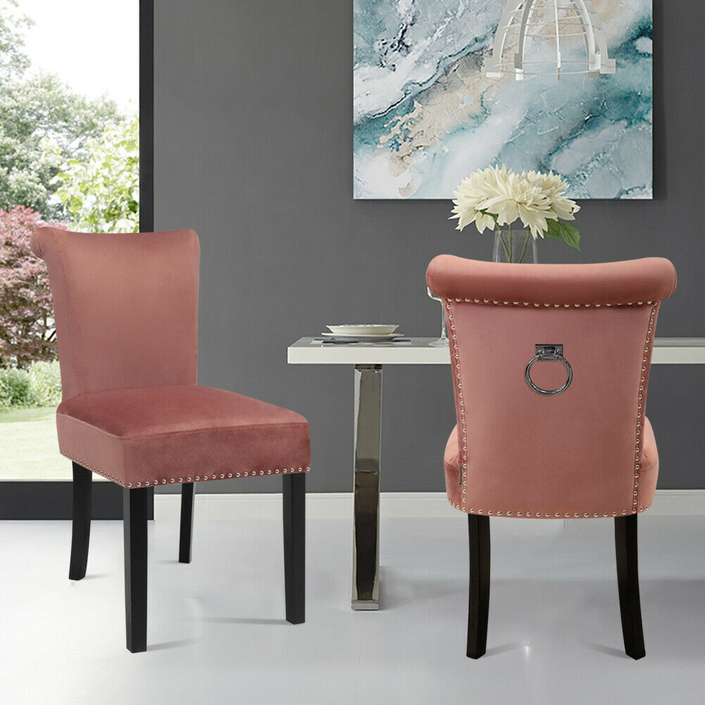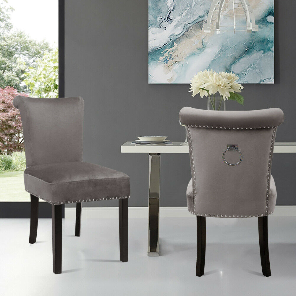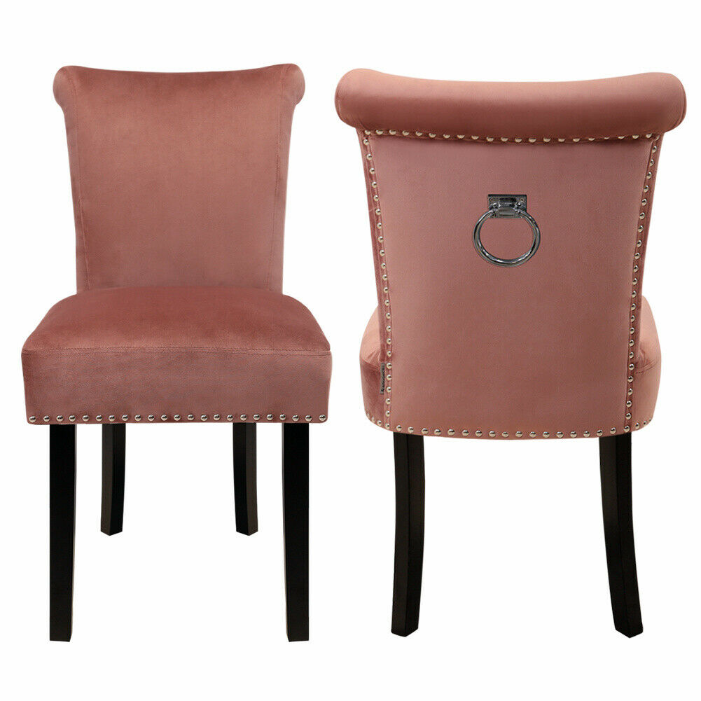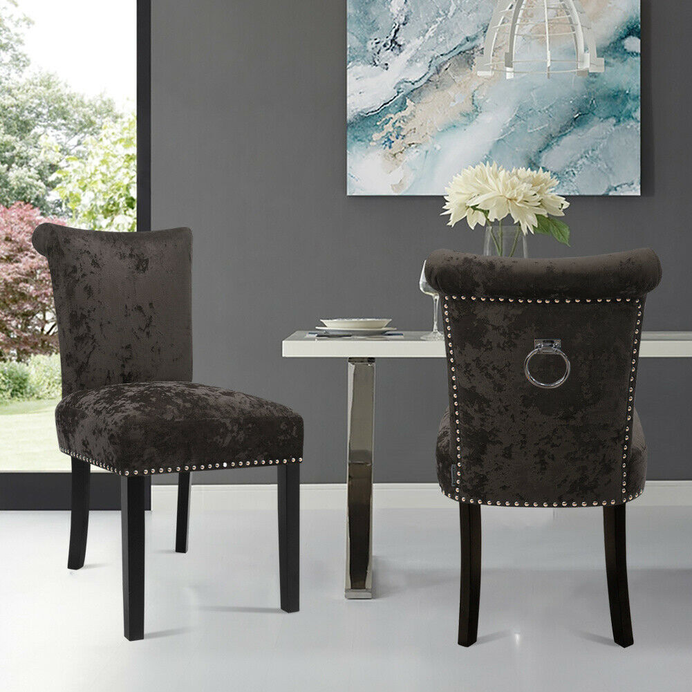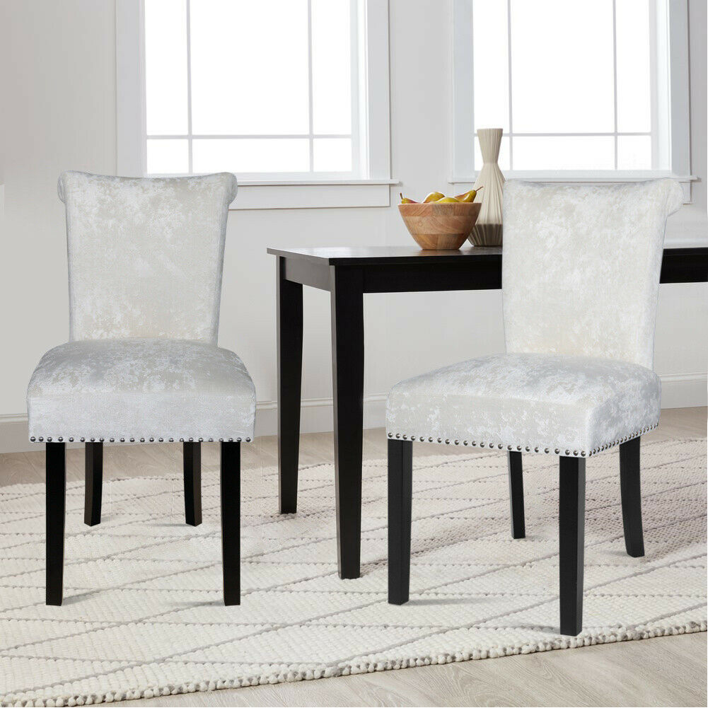 2x Crushed Velvet Dining Chairs Knocker Back/Ring Back Padded Seat Kitchen Chair