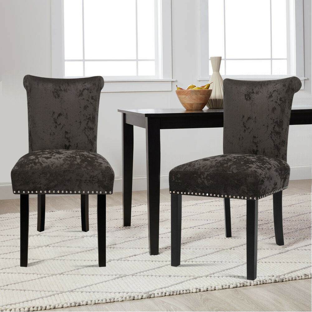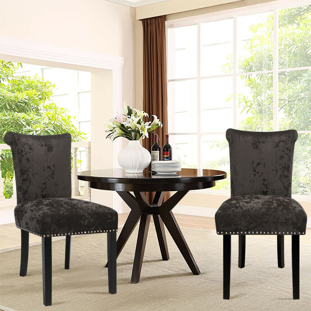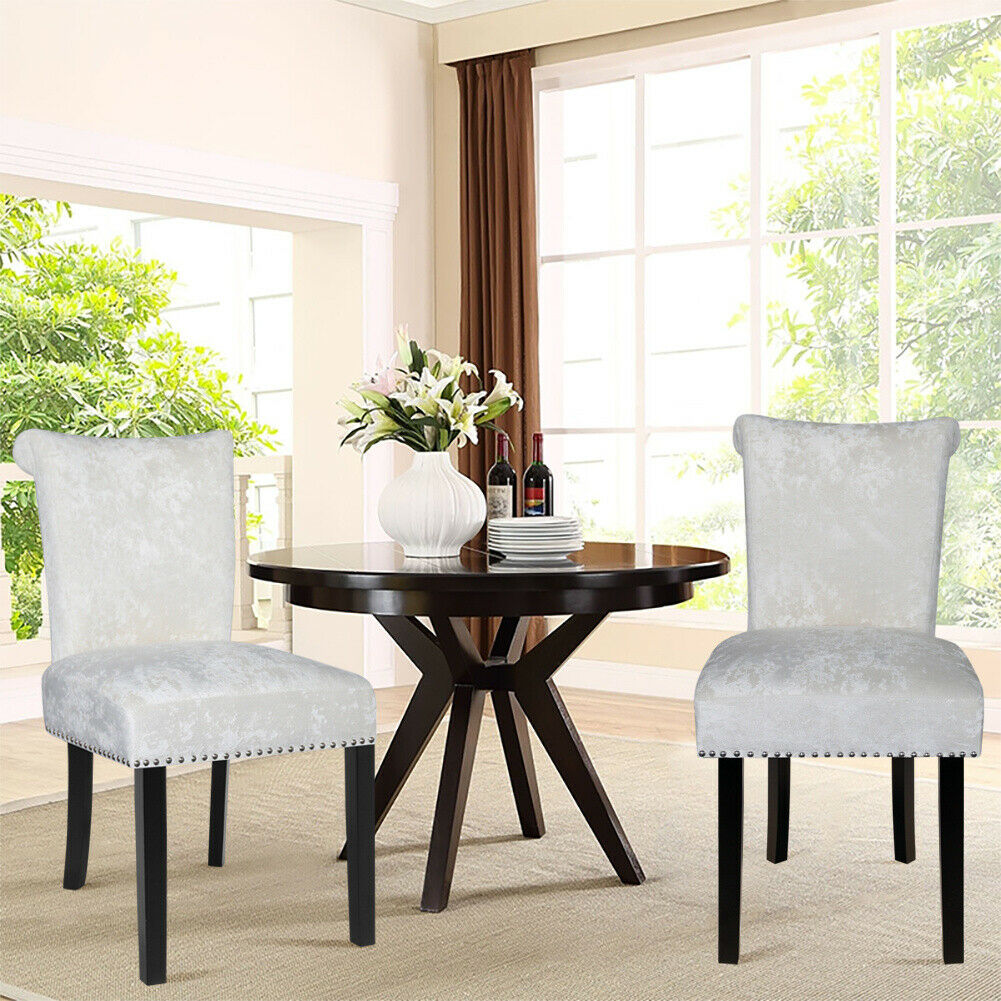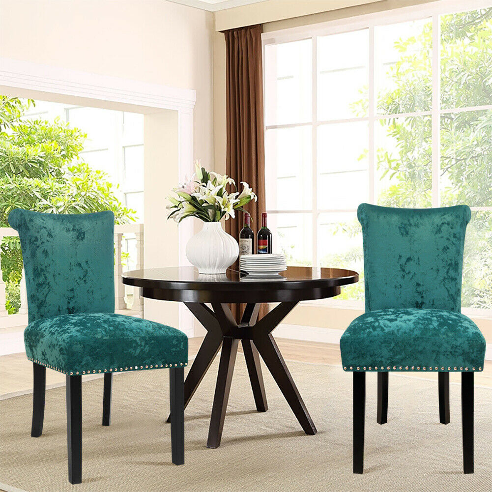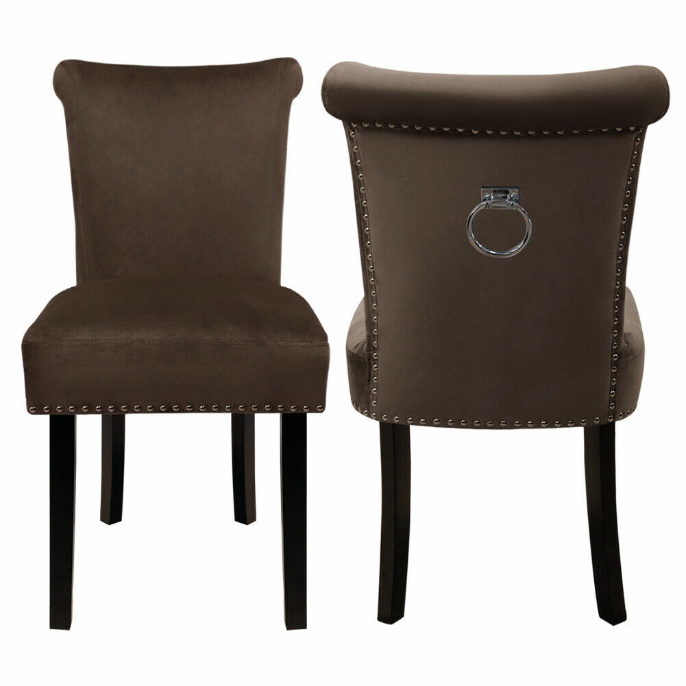 2x Crushed Velvet Dining Chairs Knocker Back/Ring Back Padded Seat Kitchen Chair