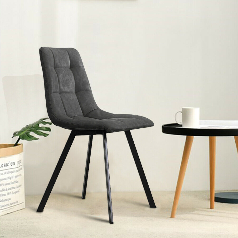 - 2x Dining Chairs Faux Suede Cushion Padded Metal Legs Restaurant Lounge Chair